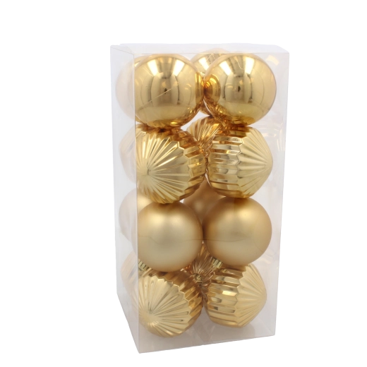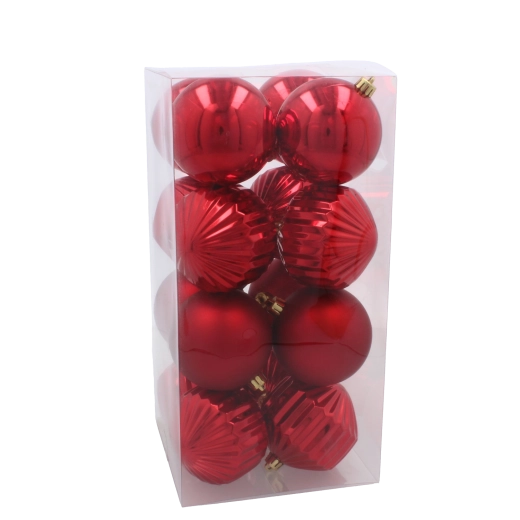 Vneste do domova kouzlo Vánoc se sadou 16 vánočních koulí o průměru 8 cm v klasických barvách červené, zlaté a stříbrné. Vyrobeny z lehké a nerozbitné umělé hmoty, nabízejí dlouhou životnost a bezpečné použití i v domácnostech s dětmi či mazlíčky. Kombinace lesklých, matných a třpytivých povrchů vytváří bohatý a slavnostní vzhled na stromku, věnci i v dalších dekoracích.