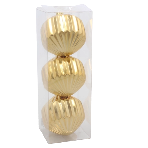 Vylaďte svou vánoční výzdobu nadčasovou kombinací červené, zlaté a stříbrné. Lesklý žebrovaný povrch krásně odráží světlo a vytváří efekt jiskřivého třpytu na stromku, girlandě i věnci. Díky lehké a odolné plastové konstrukci se baňky snadno umísťují a nezatěžují větvičky.