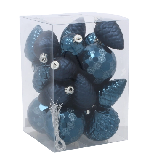 Sytá modrá s lesklou i matnou texturou přináší hloubku a kontrast. Ideální pro moderní i tradiční vánoční ladění.