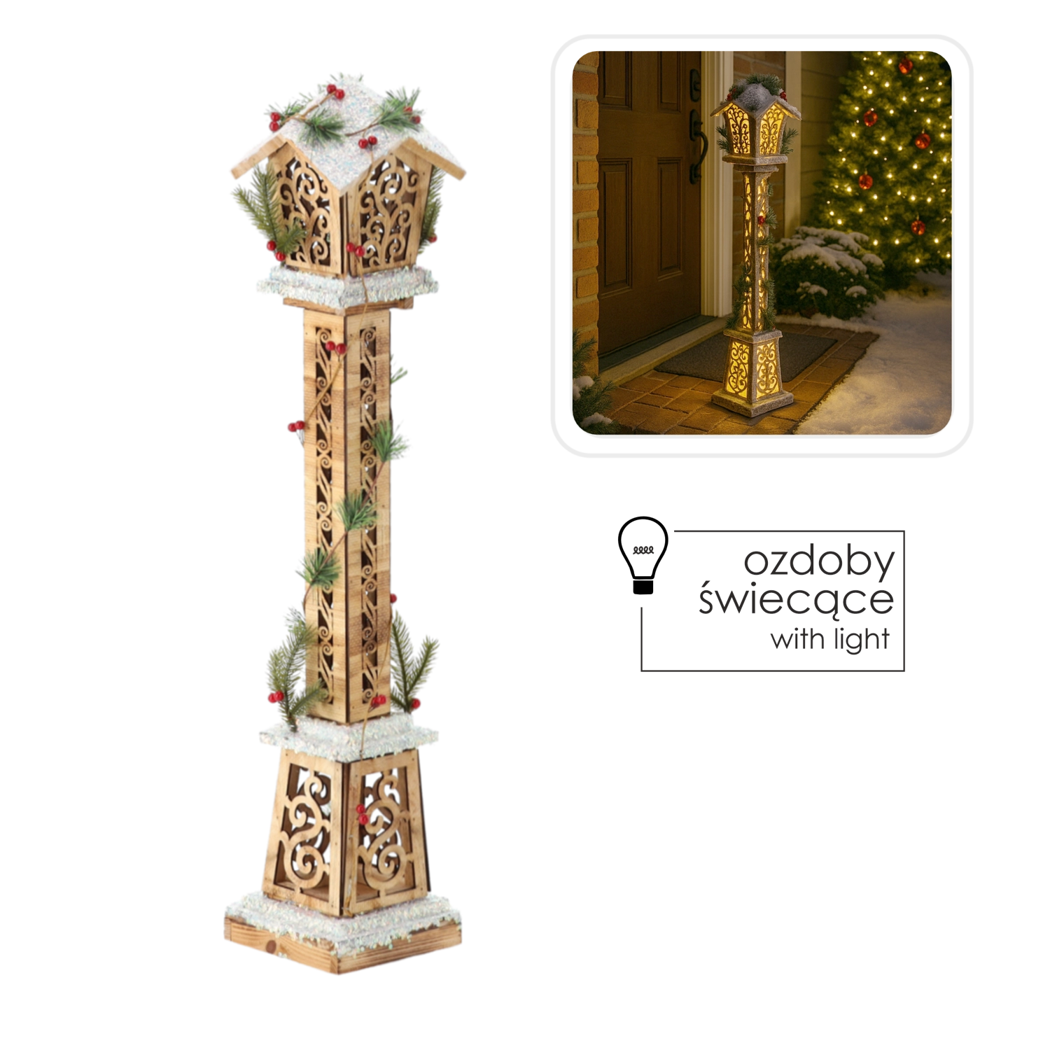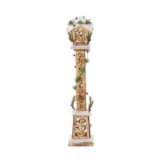 Tato stylová lucerna kombinuje přírodní dřevo, jemné teplé LED světlo a sváteční detaily, které okamžitě dodají vašemu prostoru šmrnc. Skvěle se hodí do obývacího pokoje, na chodbu i na zastřešenou terasu nebo verandu.