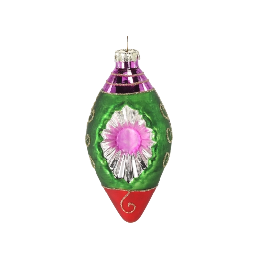 Objevte půvab tradiční ruční výroby. Skleněné vánoční ozdoby v podlouhlém tvaru soplu se stilizovaným reflektorem upoutají pozornost hrou světel a barev. Ručně malované detaily dělají z každého kusu originál, který obohatí váš stromeček i sváteční aranžmá.
