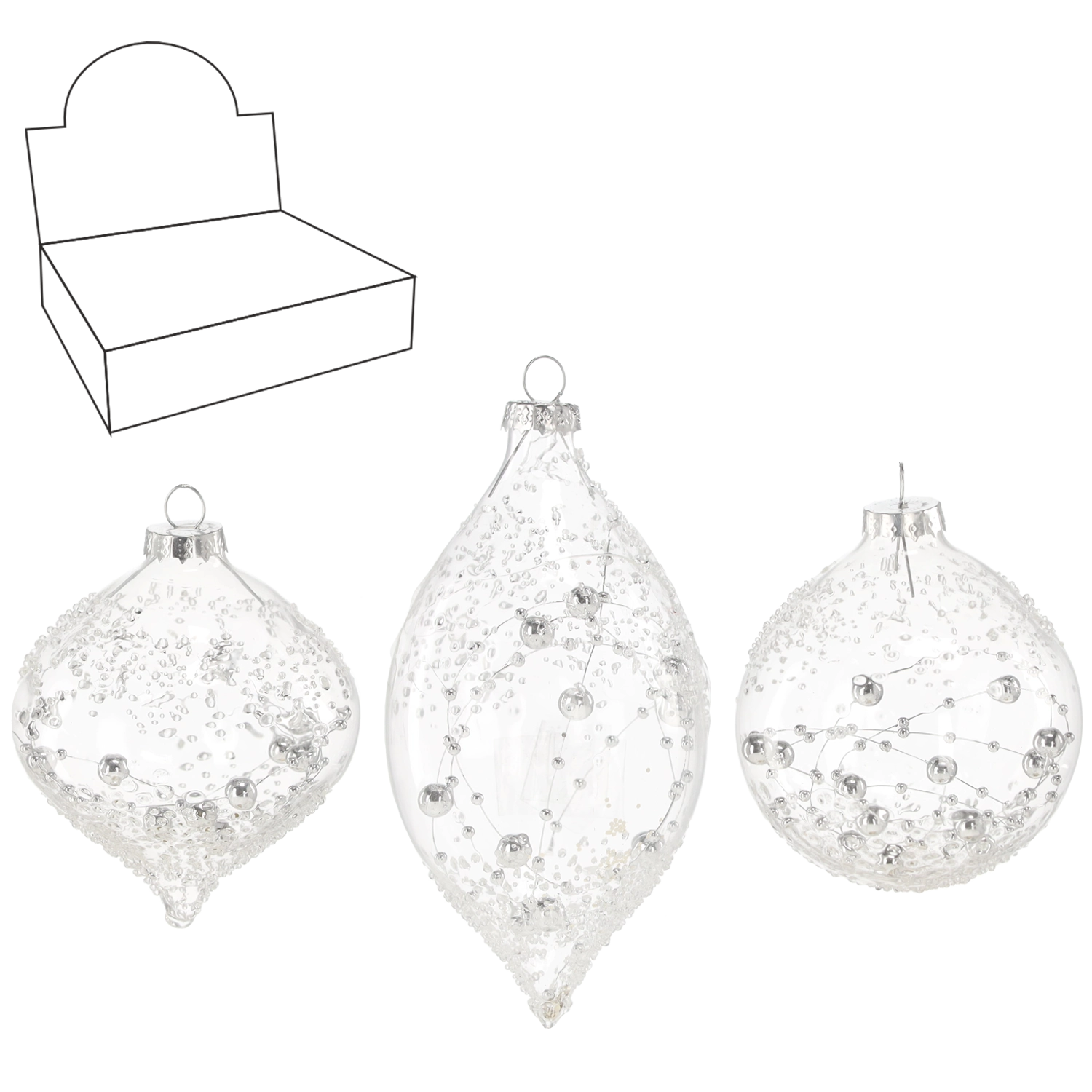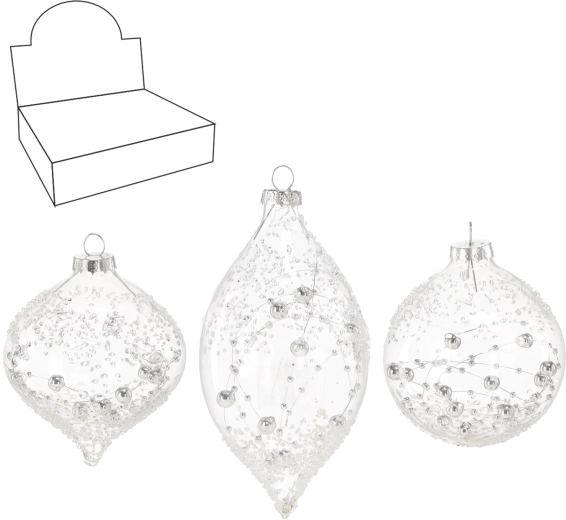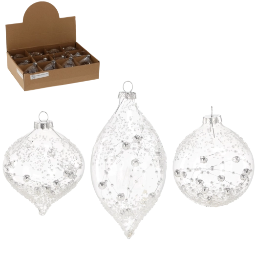 Elegantní skleněné ozdoby pro vánoční stromek v transparentním provedení dodají výzdobě jemný lesk a nadčasový styl. V balení najdete mix designů a tvarů – kulaté bombky o průměru 8 cm a podlouhlé ozdoby 7 × 13,6 cm. Skvěle se hodí k různým stylům dekorování a díky kvalitnímu sklu působí luxusně, vzdušně a univerzálně.