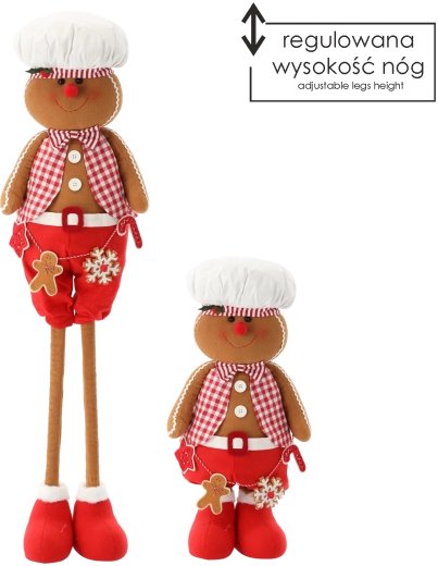 Roztomilá vánoční dekorace v podobě perníkového chlapce s teleskopickými nohami vnese do vašeho domova kouzlo Vánoc. Díky nastavitelné výšce ji snadno přizpůsobíte různým prostorům, zatímco stabilní konstrukce a kvalitní materiály zajistí dlouhou životnost a krásný vzhled u stromku, na krbu i na slavnostním stole.