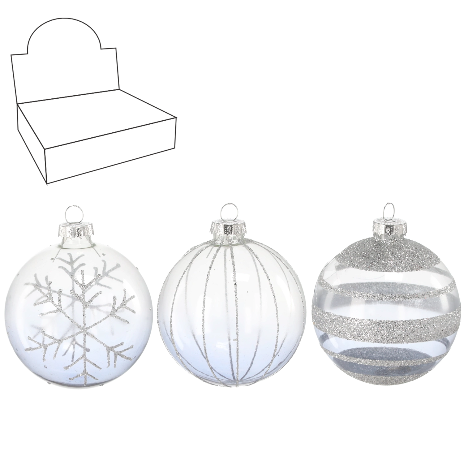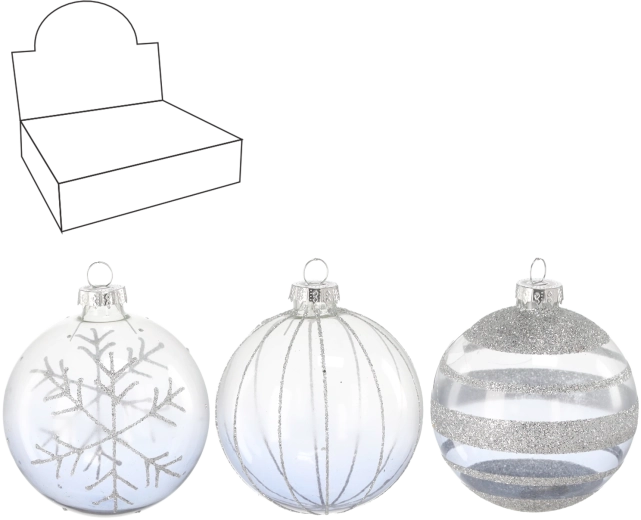 Elegantní skleněné koule o průměru 8 cm v průhledném provedení s ručním zdobením dodají stromku jemný a sofistikovaný vzhled. Každý kus je originál díky různorodým vzorům, takže snadno vytvoříte harmonickou a pestrou výzdobu v tradičním i moderním stylu.