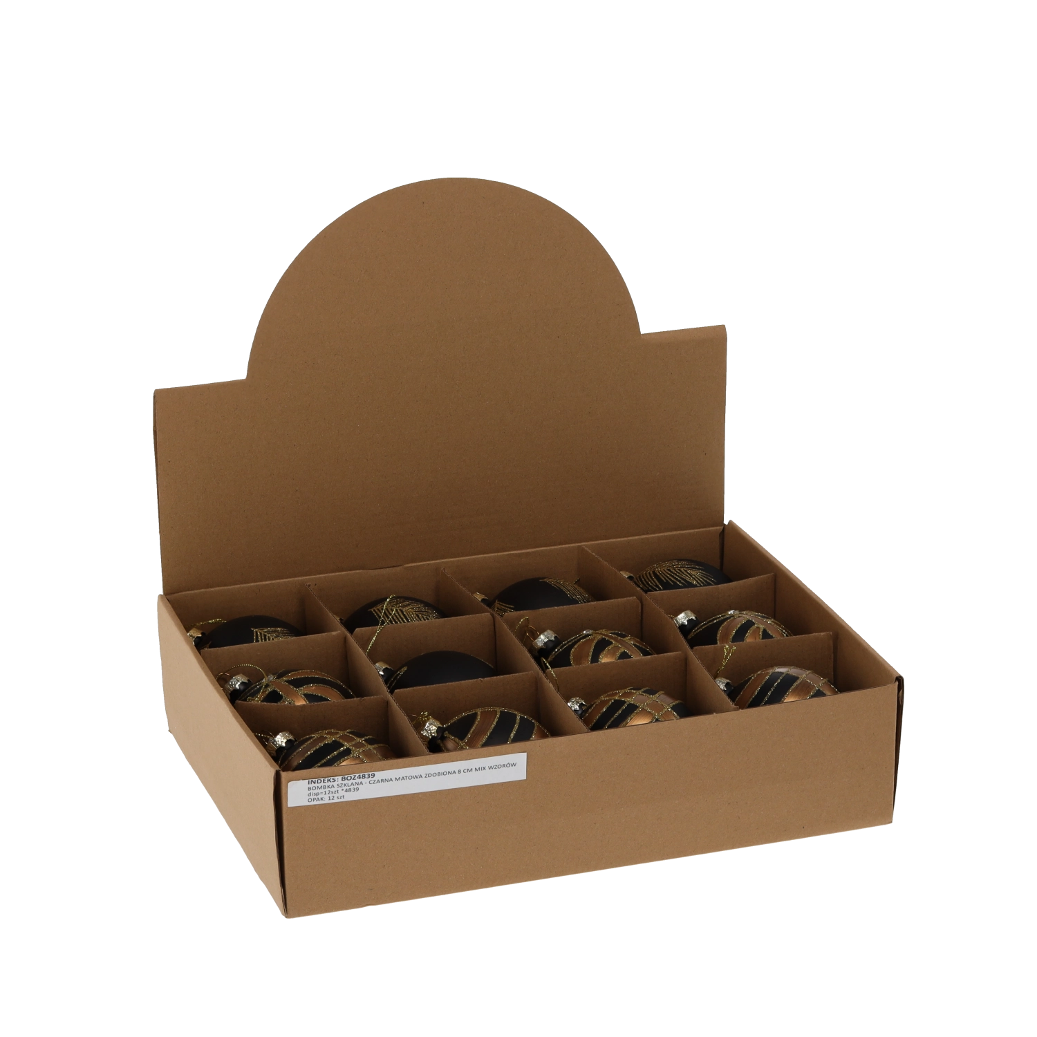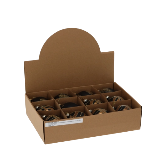 Elegantní skleněné vánoční koule o průměru 8 cm v matné černé barvě se zlatým zdobením dodají vašemu stromku sofistikovaný a moderní vzhled. Sada 12 kusů s různými vzory vytváří harmonický kontrast a přináší teplý, slavnostní lesk do každého interiéru.