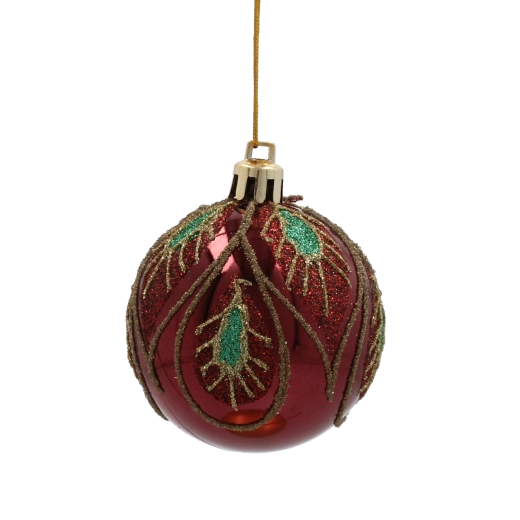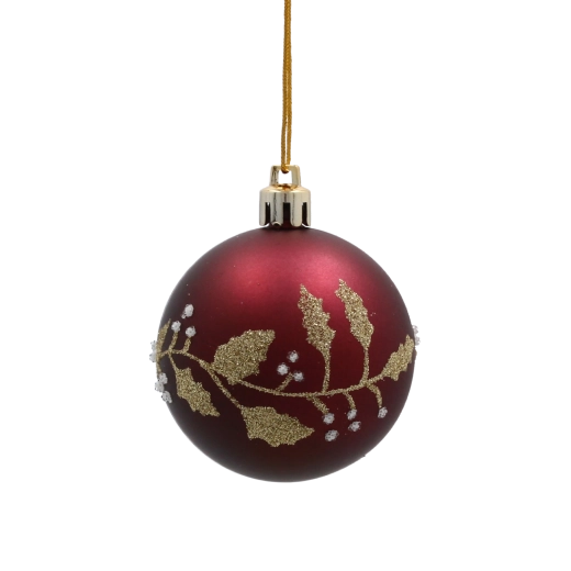 Vneste do domova pravou sváteční náladu se sadou osmi burgundských vánočních koulí o průměru 6 cm. Každá ozdoba z odolného plastu má elegantní zlatý listový vzor a kombinaci matného a lesklého povrchu, která dodá stromku sofistikovaný třpyt a harmonický kontrast. Díky lehkému provedení se snadno zavěšují a jsou ideální jak na vánoční stromek, tak pro sváteční aranžmá a věnce.