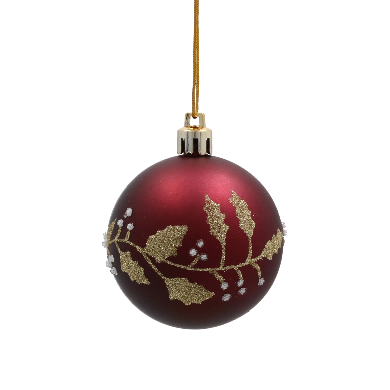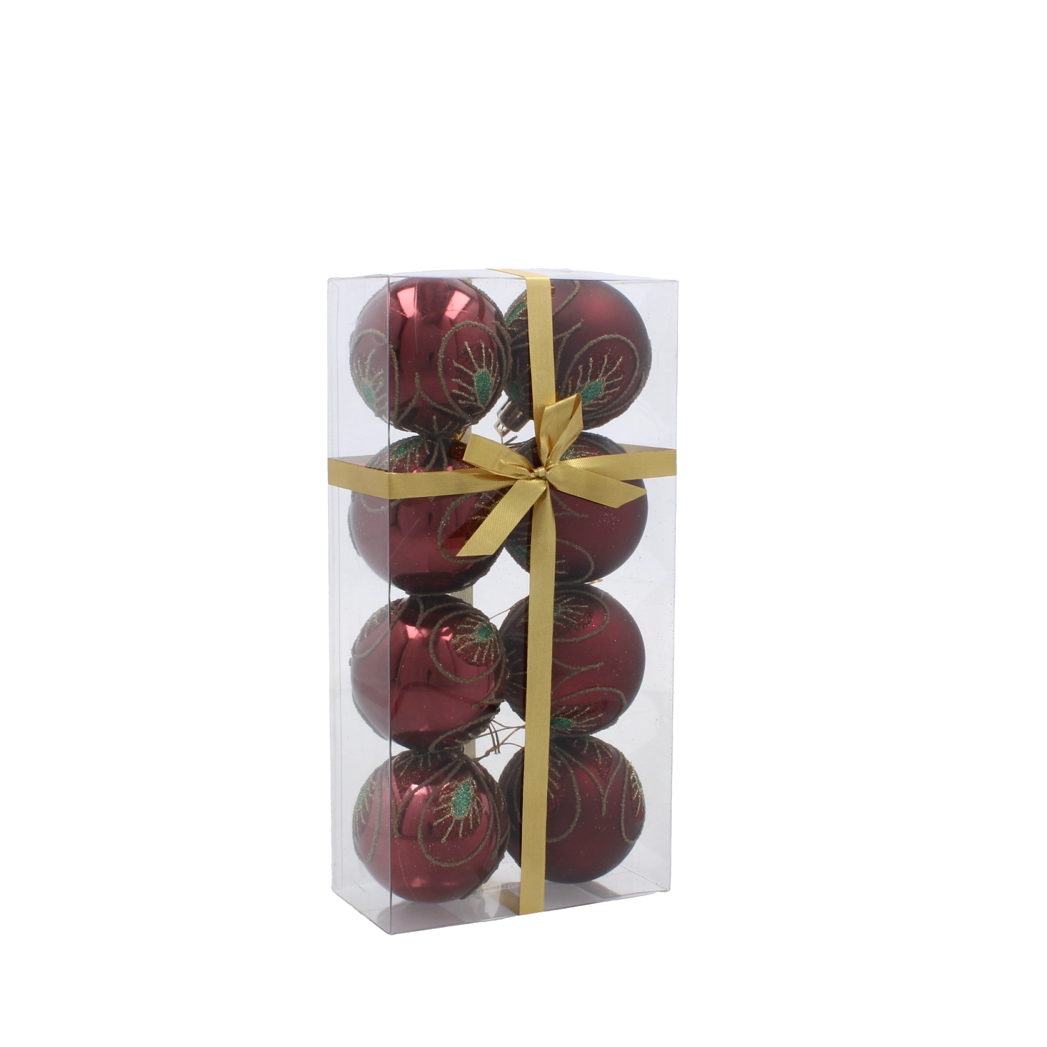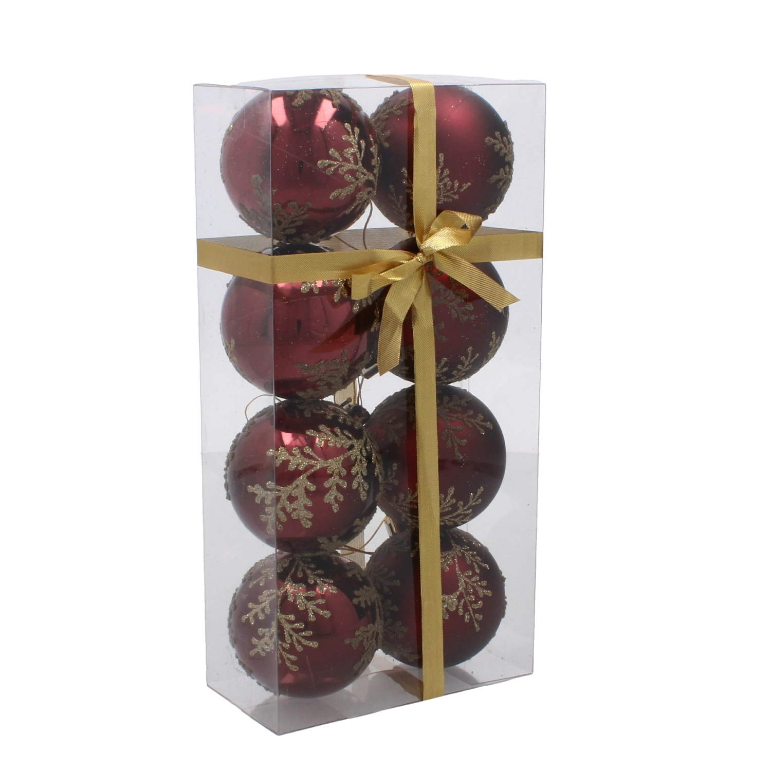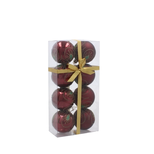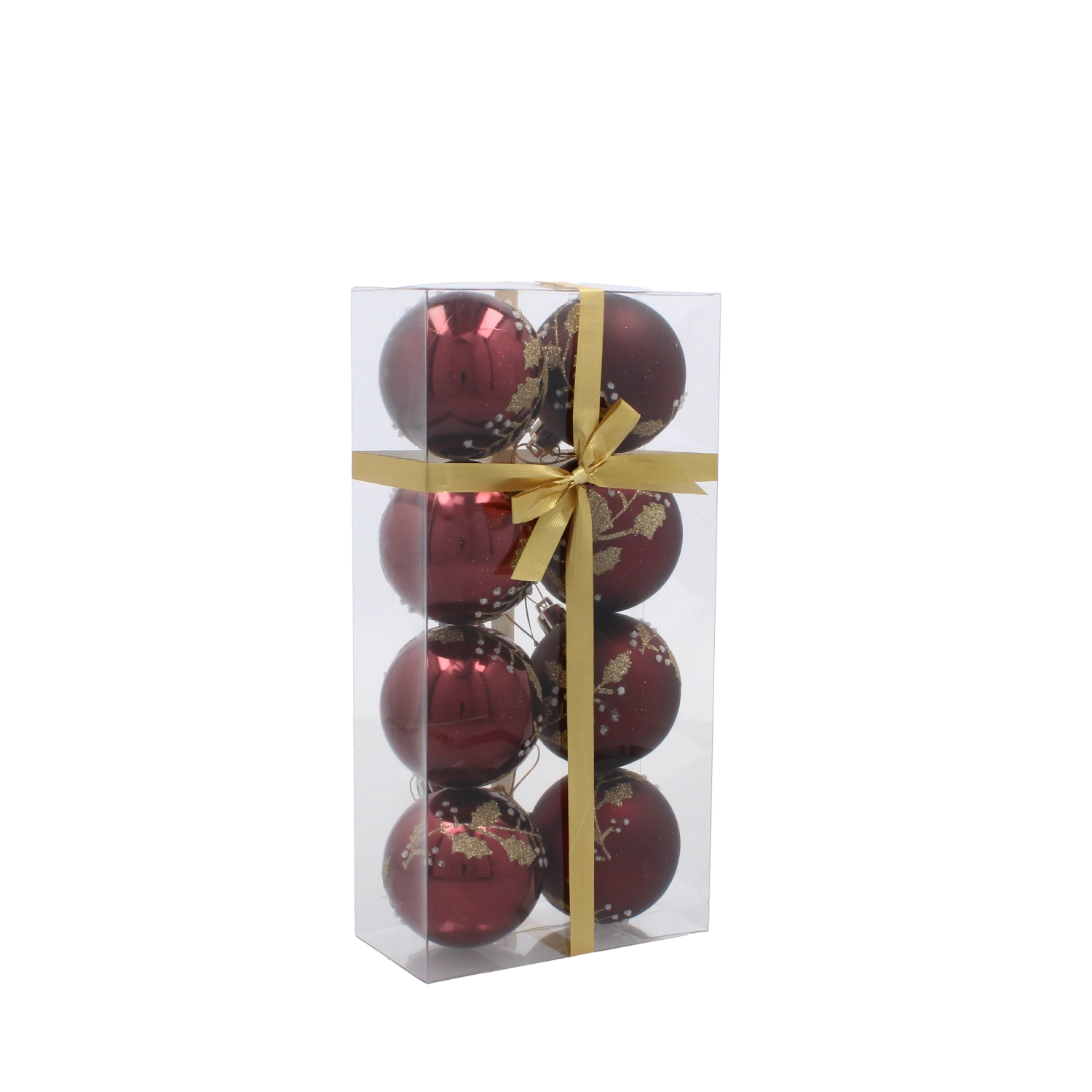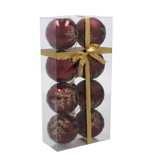 Tato stylová sada ozdob v hlubokém burgundském odstínu přináší teplý a slavnostní akcent do každého interiéru. Jemný zlatý motiv listů působí luxusně a v kombinaci s matným i lesklým povrchem vytváří výjimečnou hru světla na větvích vašeho stromku.