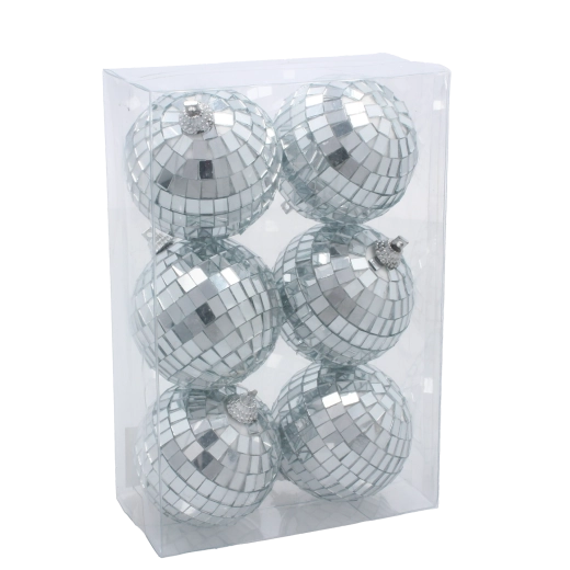 Tato sada 6 vánočních baněk vyniká minimalistickým, ale zároveň elegantním designem, který skvěle ladí s klasickými i moderními styly dekorování. Průhledné tělo s bílým, jemně třpytivým motivem dodává stromku lehkost a šmrnc, přičemž světlo se na povrchu krásně odráží.