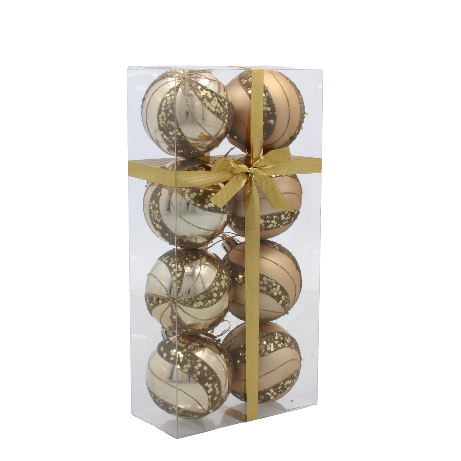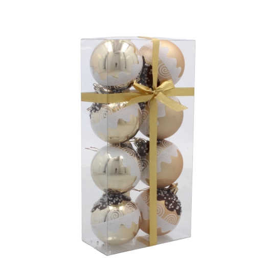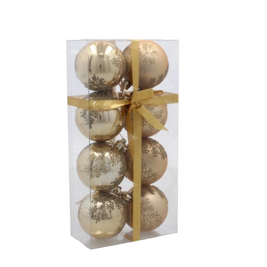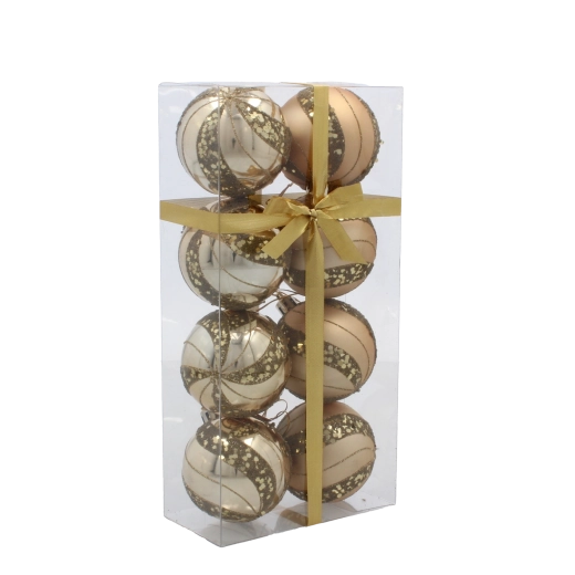 Díky různorodým vzorům vytvoříte nápadité kombinace a snadno dosáhnete vyváženého vzhledu stromku či dalších aranžmá. Lesklé i dekorativně zdobené povrchy odrážejí světlo a přinášejí do interiéru teplý zlatý nádech.