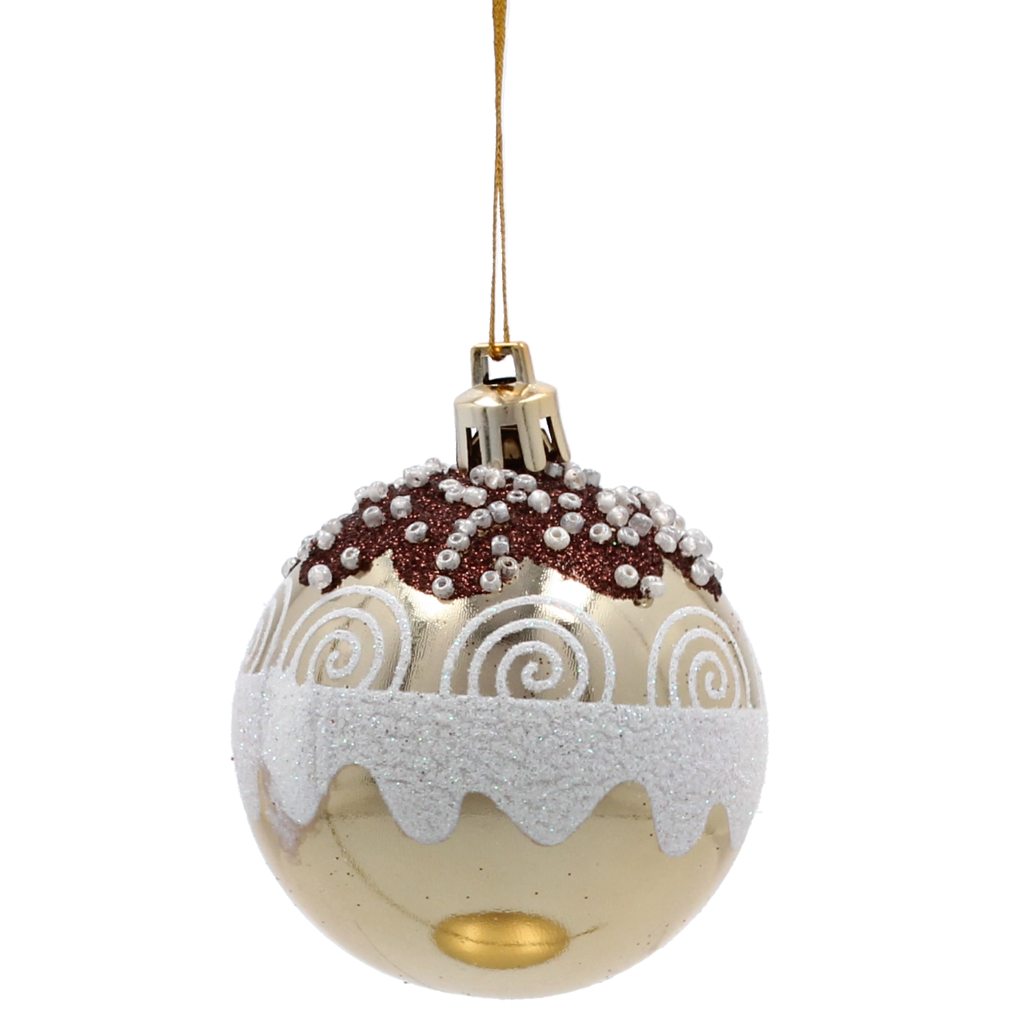 Rozzařte svůj stromek elegantním setem zlatých koulí o průměru 6 cm. Sada obsahuje 8 kusů v různých vzorech pro harmonickou výzdobu, vyrobených z netříštivého plastu pro bezpečí a odolnost. Každá ozdoba má šňůrku pro snadné zavěšení, takže dekorování je rychlé a pohodlné.