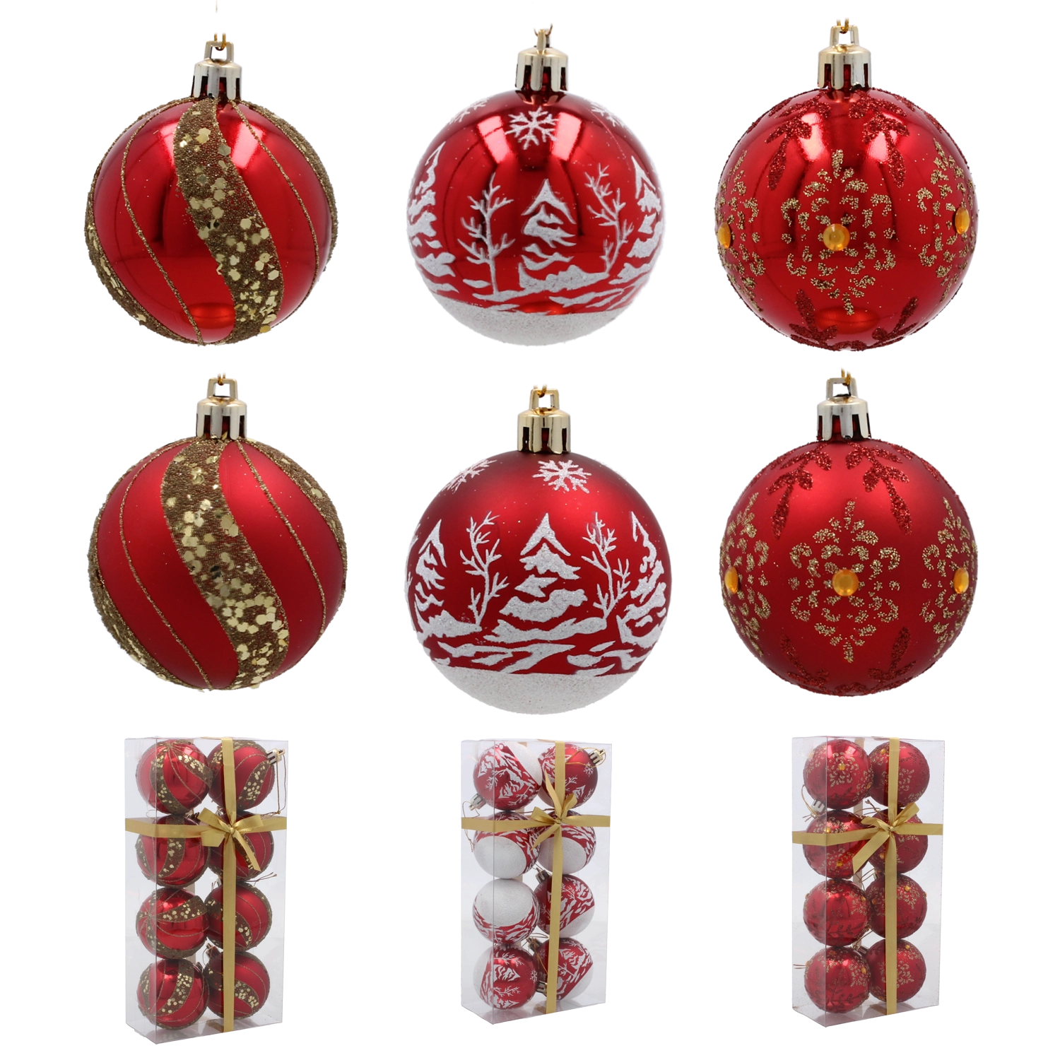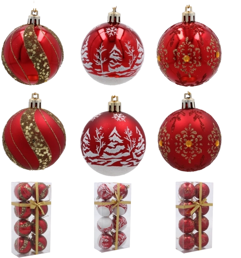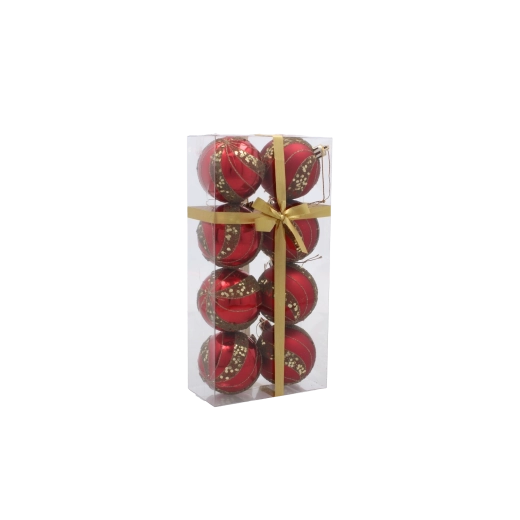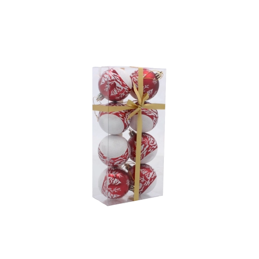 Elegantní sada červených koulí v jednotném designu a s různými vzory okamžitě pozvedne vzhled každého vánočního stromku. Díky kombinaci matných a lesklých povrchů se ozdoby nádherně třpytí při světle svíček i LED řetězů a vytvářejí teplou sváteční atmosféru.