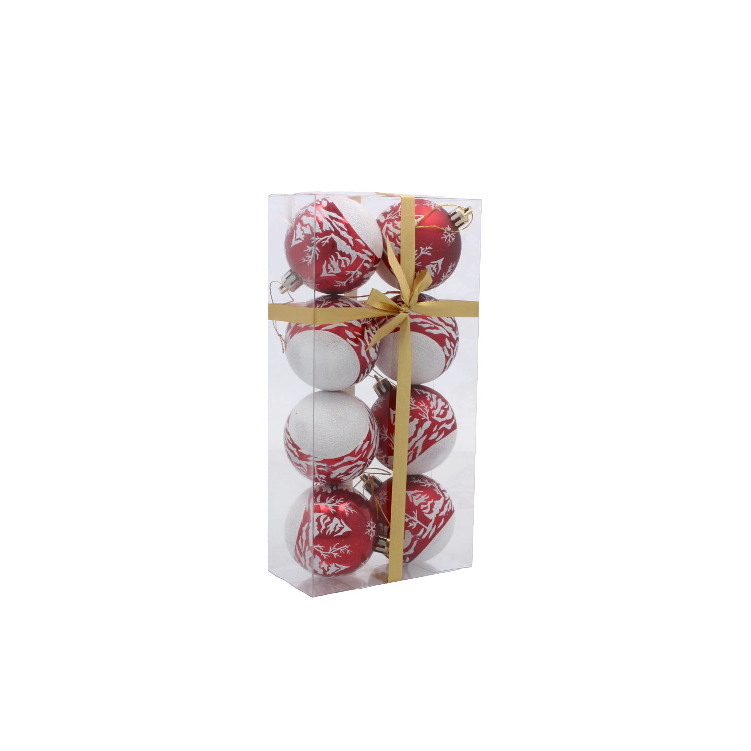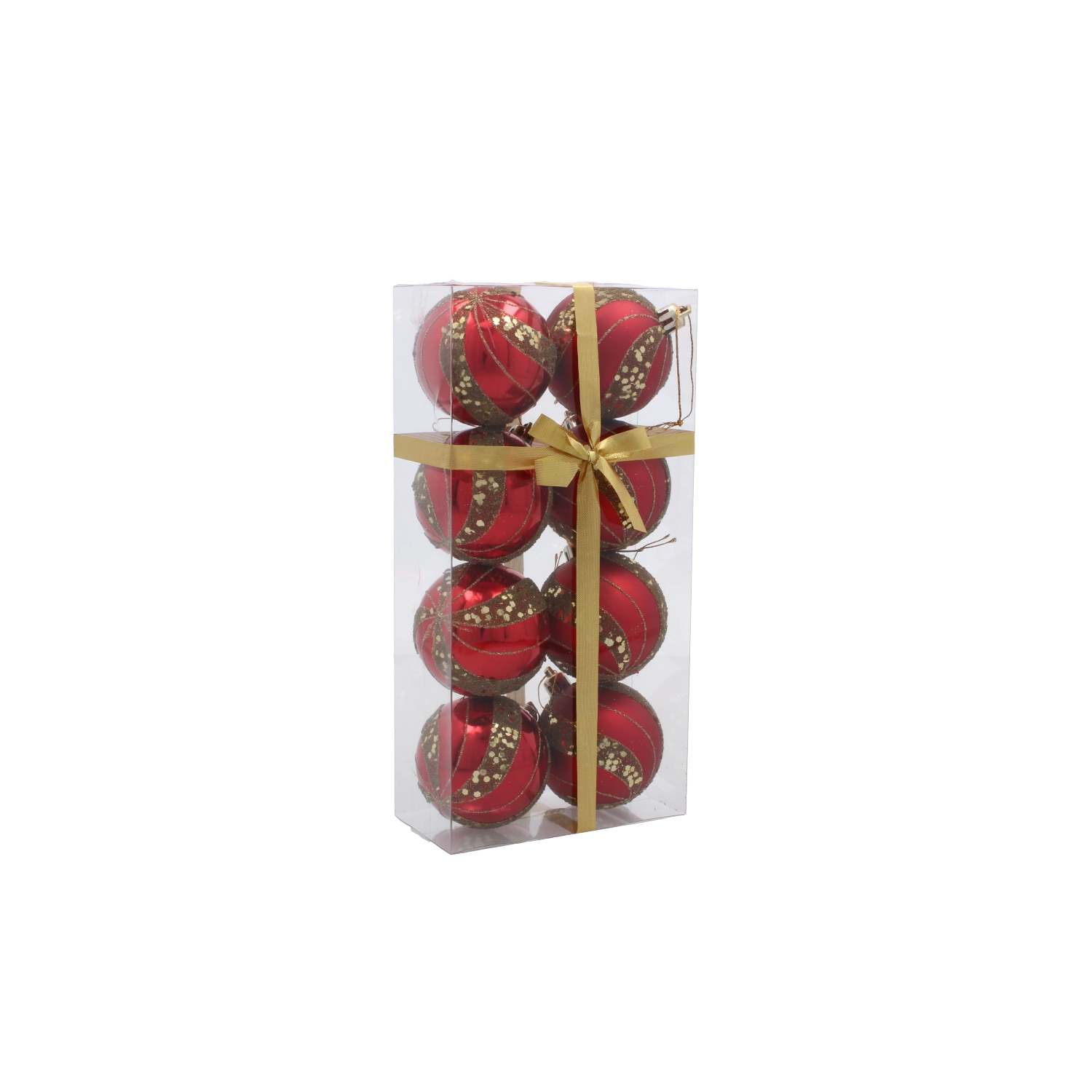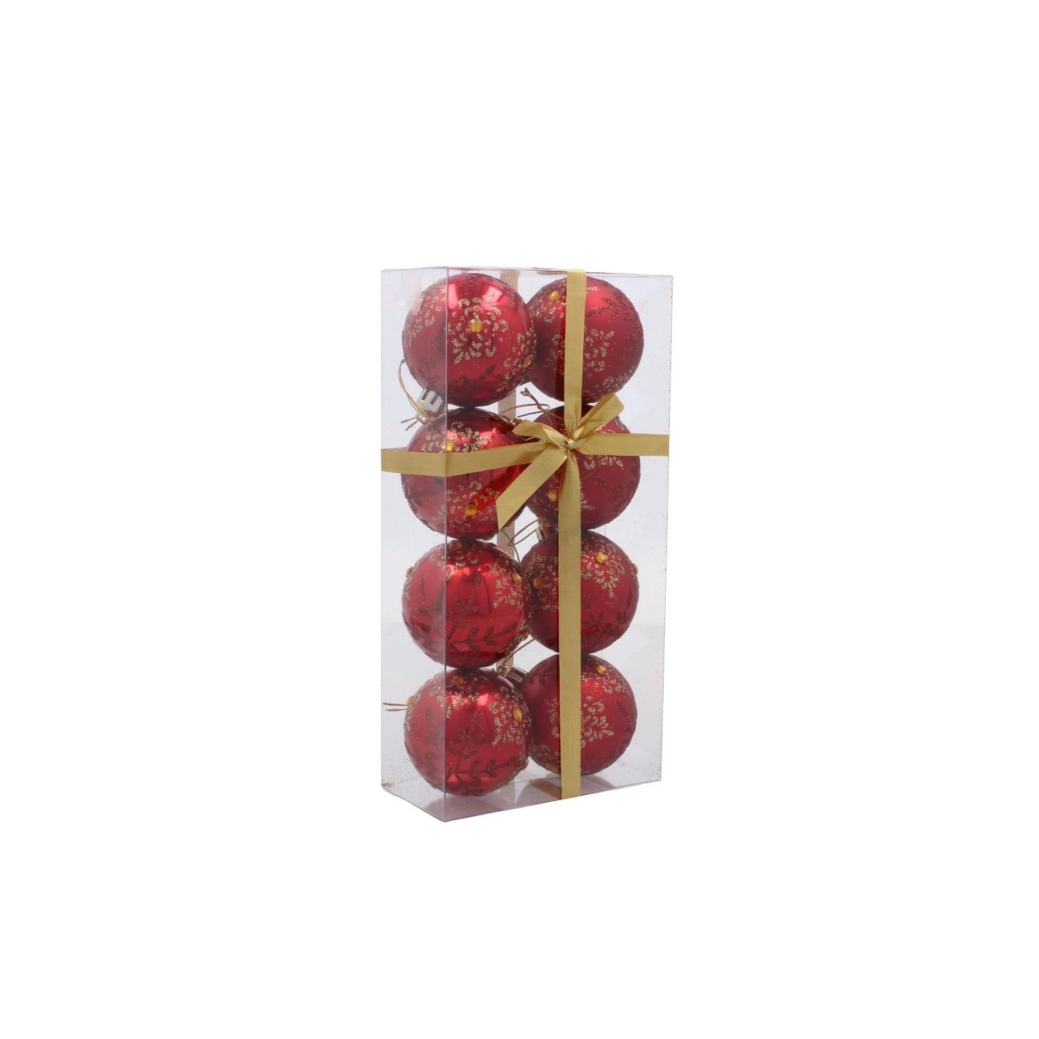 Sada v průhledné krabičce se zlatou stuhou je připravena k darování. Každá koule má šňůrku pro okamžité použití.