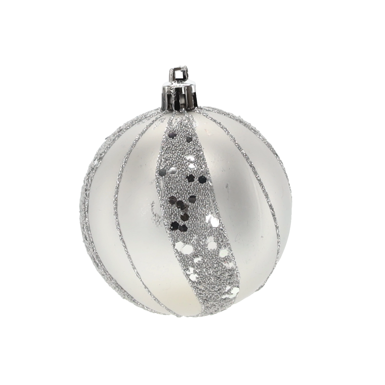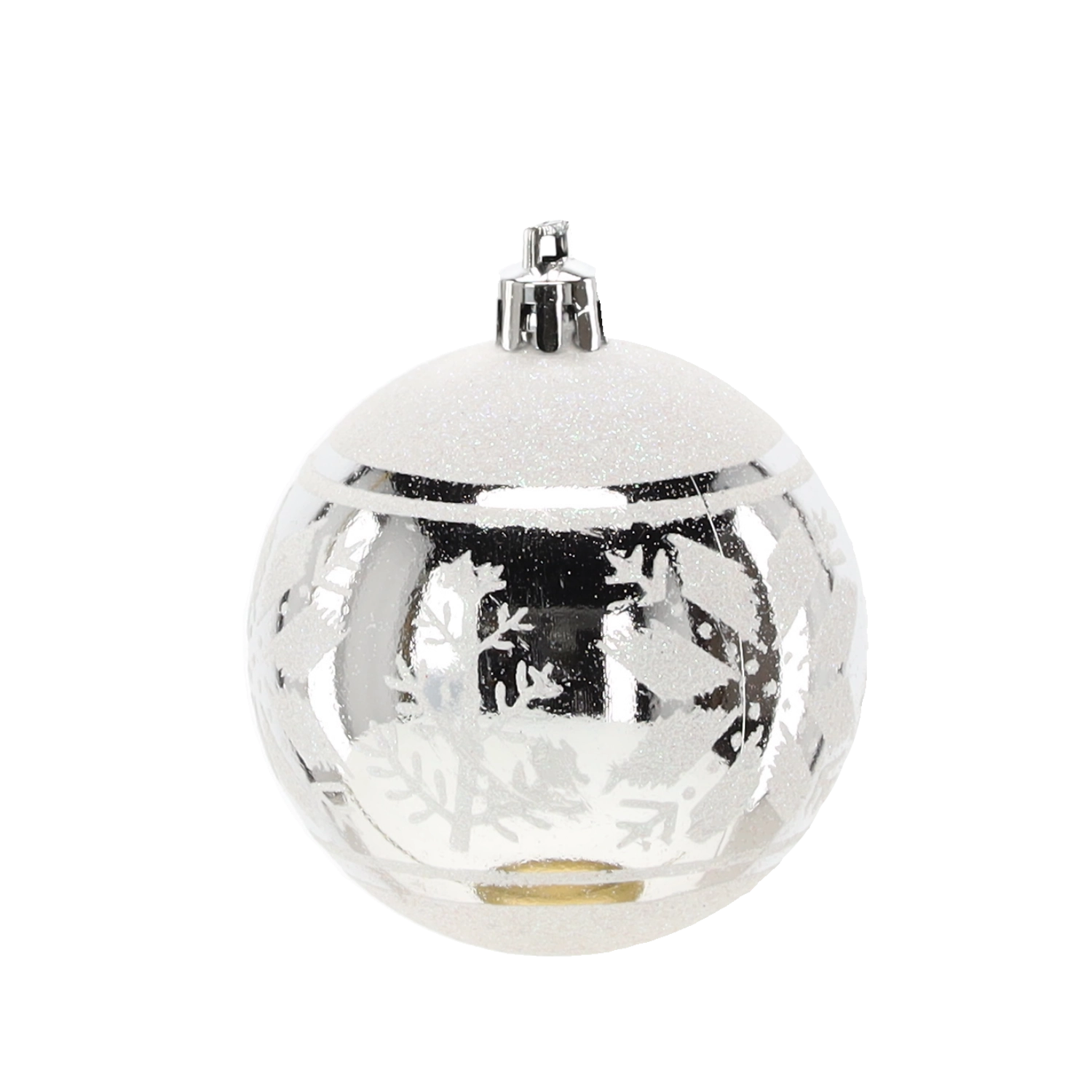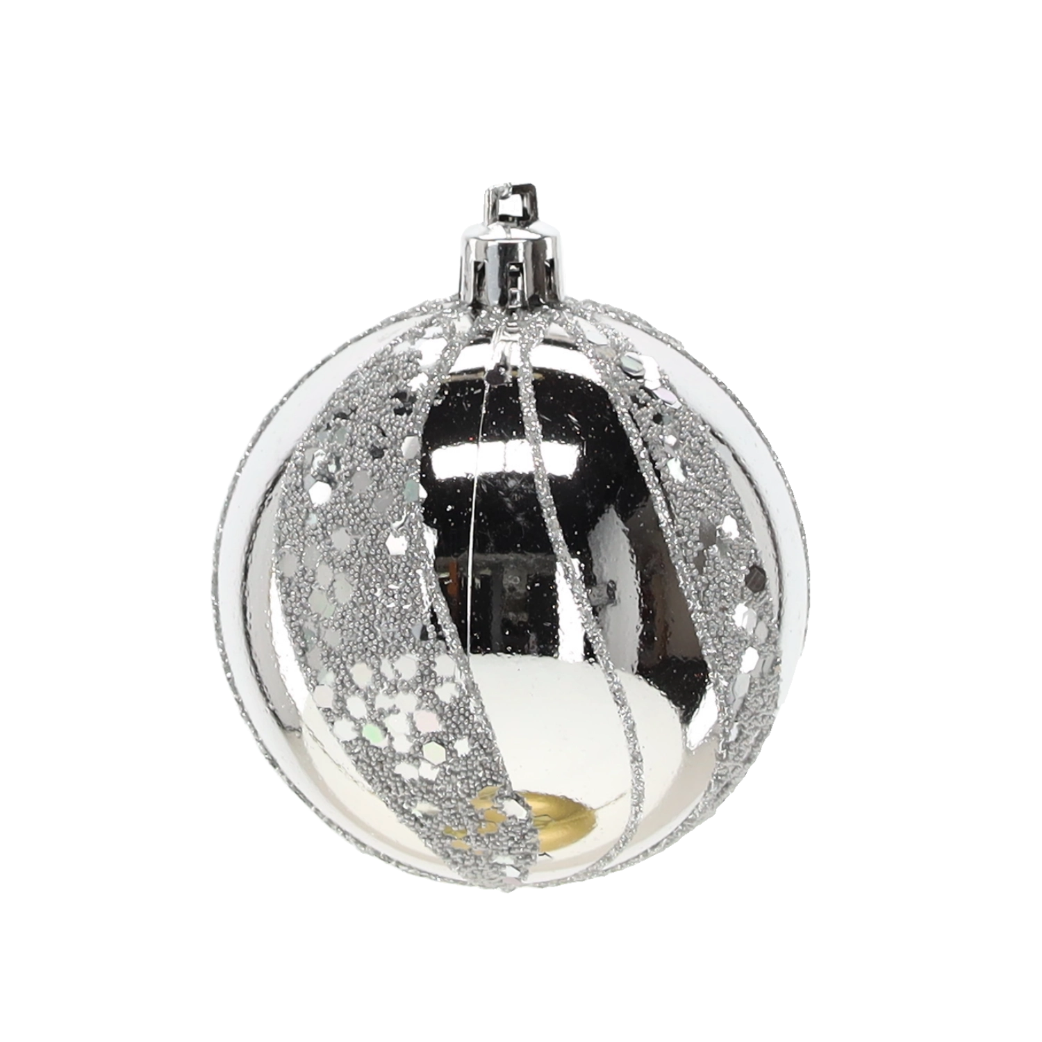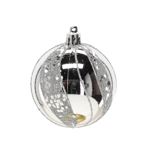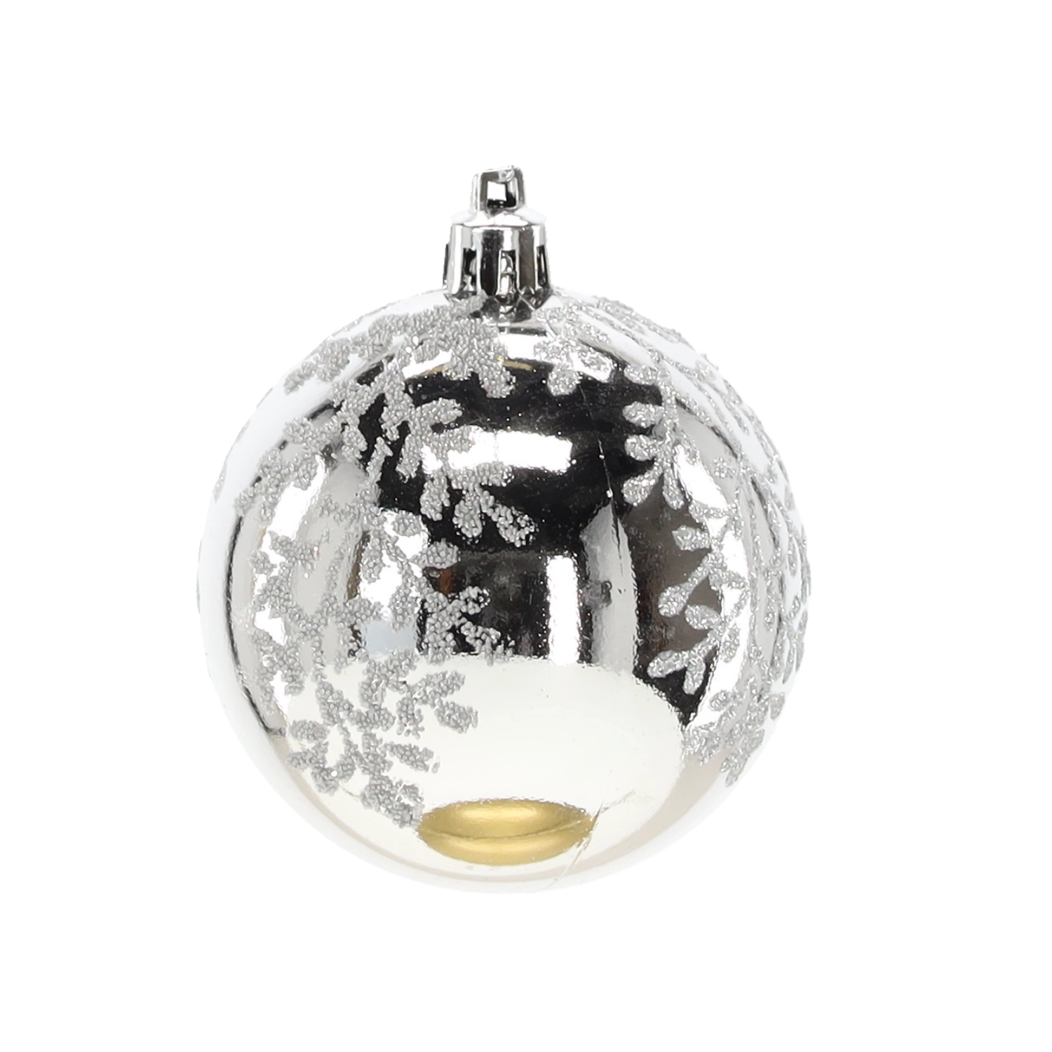 Vylaďte svůj interiér se sadou 6 stříbrných baněk, které díky různým vzorům a povrchovým úpravám přinášejí do výzdoby hloubku a dynamiku. Univerzální stříbrná barva se snadno kombinuje s tradičními i moderními dekoracemi a krásně odráží světlo.