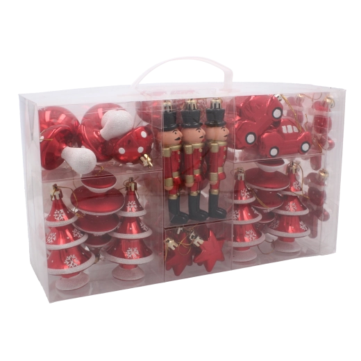 Sada 50 vánočních ozdob v červené, stříbrné a zlaté barvě