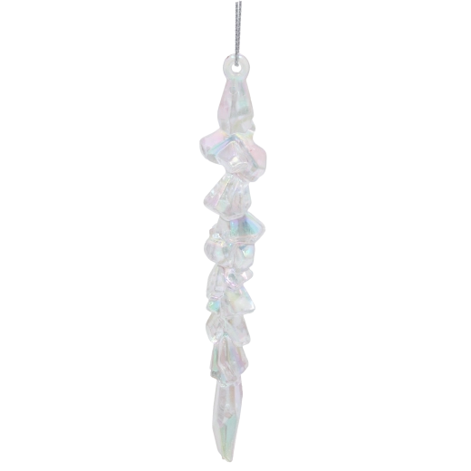 Elegantní vánoční ozdoba ve tvaru soplu o délce 15 cm s opalizujícím povrchem dodá stromku efekt ledového lesku. Lehký a odolný plast je bezpečný i do domácností s dětmi a díky šňůrce pro snadné zavěšení ji umístíte na stromek, věnce, girlandy i do oken.