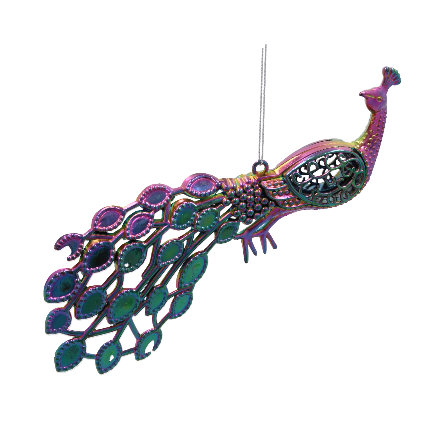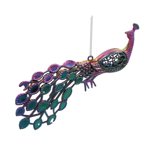 Elegantní vánoční ozdoba ve tvaru páva dodá vaší výzdobě jedinečný lesk a sofistikovaný vzhled. Speciální povrch s duhovým efektem připomínajícím odlesky benzínu se mění podle úhlu světla a vytváří okouzlující barevné přechody. Lehký a odolný plastový materiál a praktický klip umožní snadné upevnění na větve stromku, girlandy, věnce i stolní dekorace.