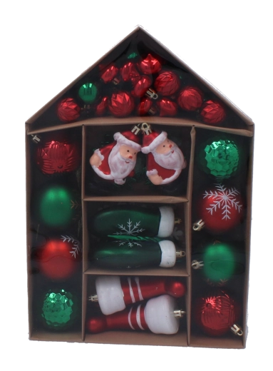 Tato bohatá sada vánočních ozdob promění váš stromek v harmonickou sváteční dekoraci. Mix tvarů – kouličky, vločky, rampouchy, punčošky, rukavičky i figurky SANTY – navodí tradiční sváteční atmosféru a perfektně doplní ostatní dekorace v interiéru.