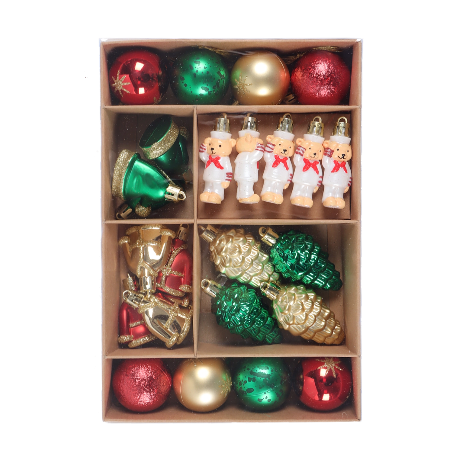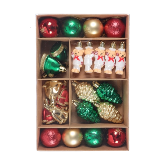 Ozdoby ve velikosti 6 cm se snadno kombinují a rovnoměrně zaplní menší i větší stromky.