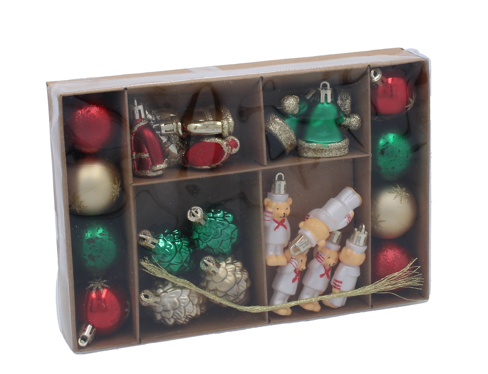 Tato elegantní sada přináší vyvážený mix povrchových úprav, které spolu skvěle ladí a rozzáří každý vánoční stromek. Zlatá barva je nadčasová, snadno se kombinuje s ostatními dekoracemi a vytváří teplou, slavnostní atmosféru domova.