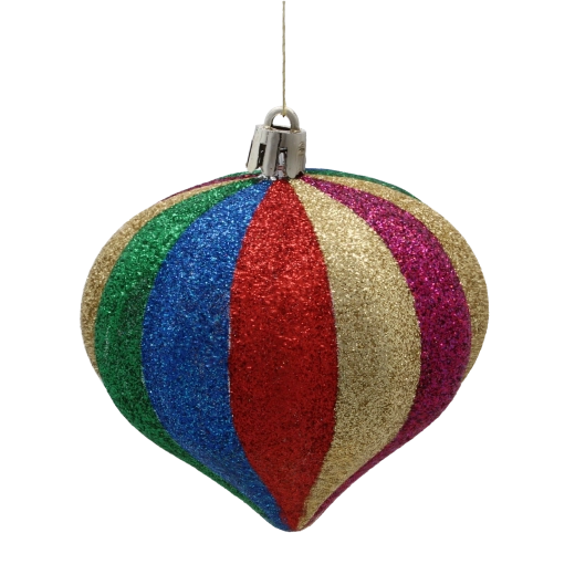 Vertikální vícebarevné pruhy a lesklý povrch okamžitě upoutají pozornost a rozjasní každý vánoční stromek i dekoraci.