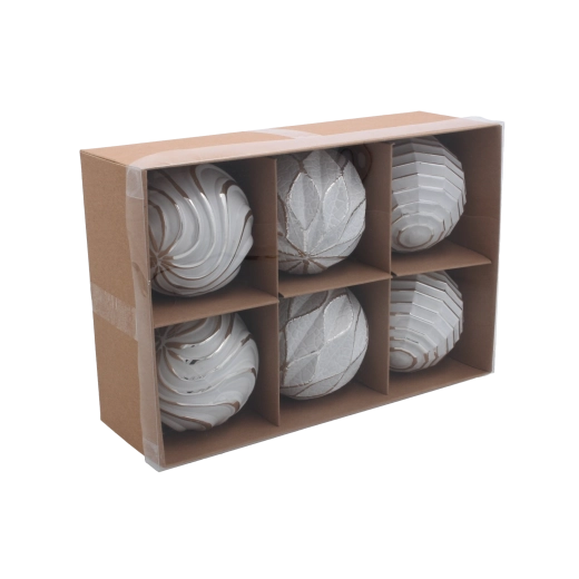 Tato sada vánočních koulí v bílo‑stříbrném provedení přináší nadčasový vzhled do každého interiéru. Tři různé vzory s výraznými texturami vytvářejí harmonický celek a propůjčují stromku stylový, slavnostní charakter. Lesklý povrch krásně pracuje se světlem a dodává výzdobě hloubku a jiskru.
