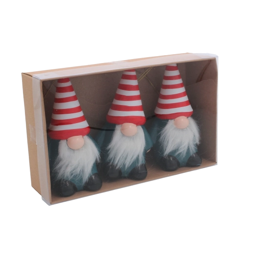 Roztomilá sada tří vánočních ozdob ve tvaru skřítků CHOMIK vnese do interiéru kouzelnou sváteční atmosféru. Lehký odolný plast, bezpečné zavěšení na šňůrku a kompaktní rozměry 6,5 × 5,5 × 12 cm z nich dělají ideální dekoraci na stromek, věnce i dárková balení. Mix barev dodá vašemu domovu hravost a originalitu.