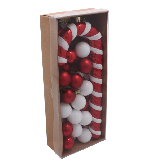 Vneste do svého domova kouzlo Vánoc se stylovou sadou 32 ozdob, která kombinuje cukrovou hůlku 25 cm a mix baňek o průměru 3 cm v tradičních barvách. Díky netříštivému plastu jsou ozdoby lehké, bezpečné a odolné, zatímco různé povrchové úpravy a snadné zavěšení pomocí šňůrek zaručí rychlou a elegantní výzdobu stromku.