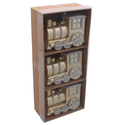 Vytvořte si dokonale sváteční atmosféru s elegantní sadou tří vánočních ozdob ve tvaru lokomotivy. Zlaté provedení s jemnými třpytkami dodává dekoracím luxusní vzhled a podtrhuje kouzlo zimních svátků. Díky lehkému a odolnému plastu jsou vhodné i pro rodiny s dětmi, přičemž si zachovávají dlouhou životnost.