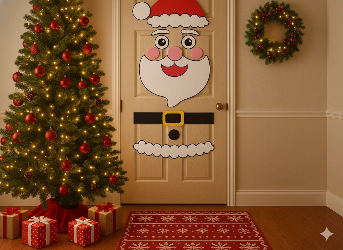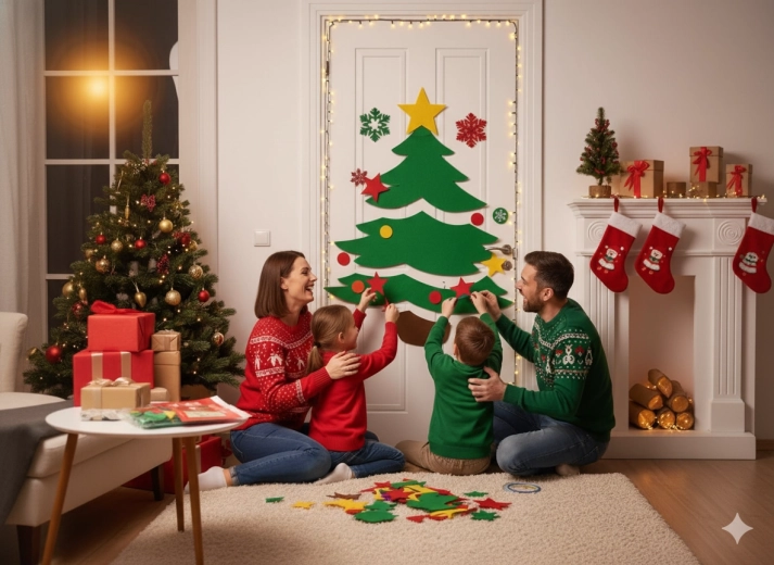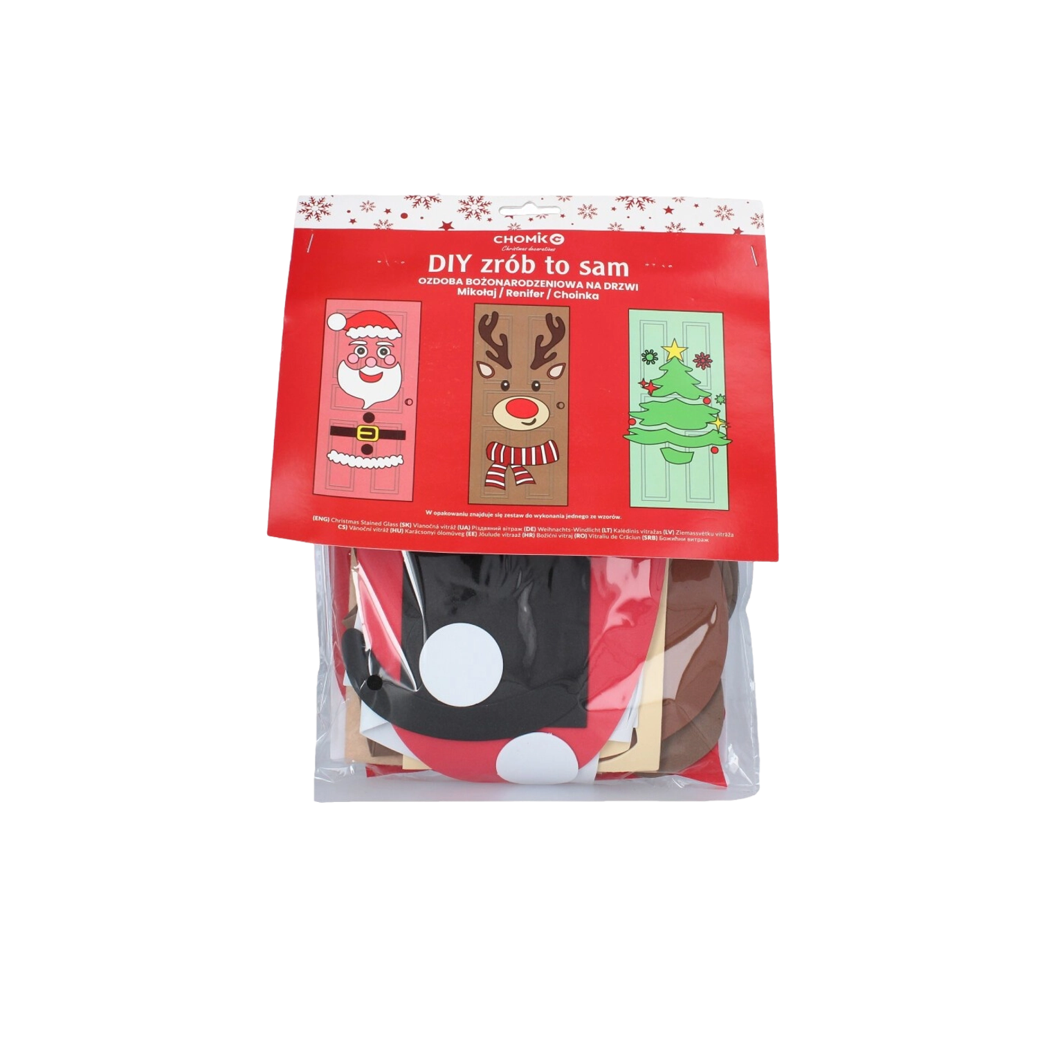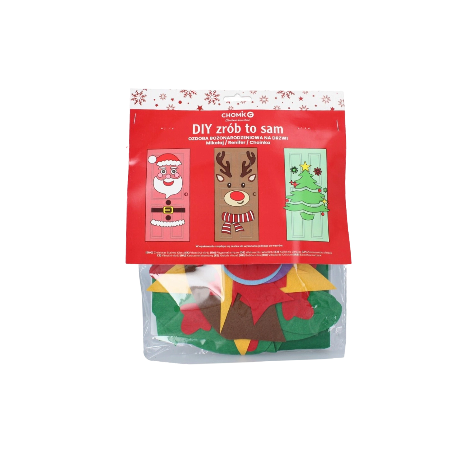 Tato sváteční dekorace promění jakékoli interiérové či vstupní dveře v působivý vánoční prvek. Měkké filcové a samolepicí části snadno připevníte a kdykoli přeuspořádáte – ideální pro děti i dospělé. Vyberte si z motivů vánočního stromečku, SANTY nebo soba a vytvořte si originální výzdobu přesně podle sebe.