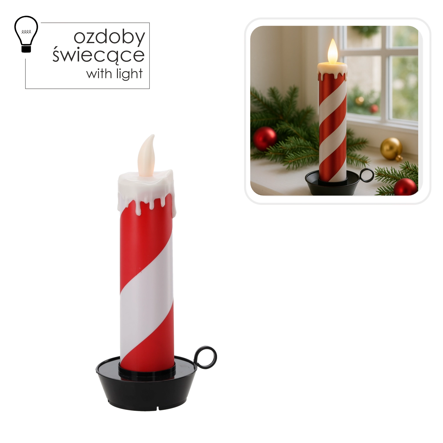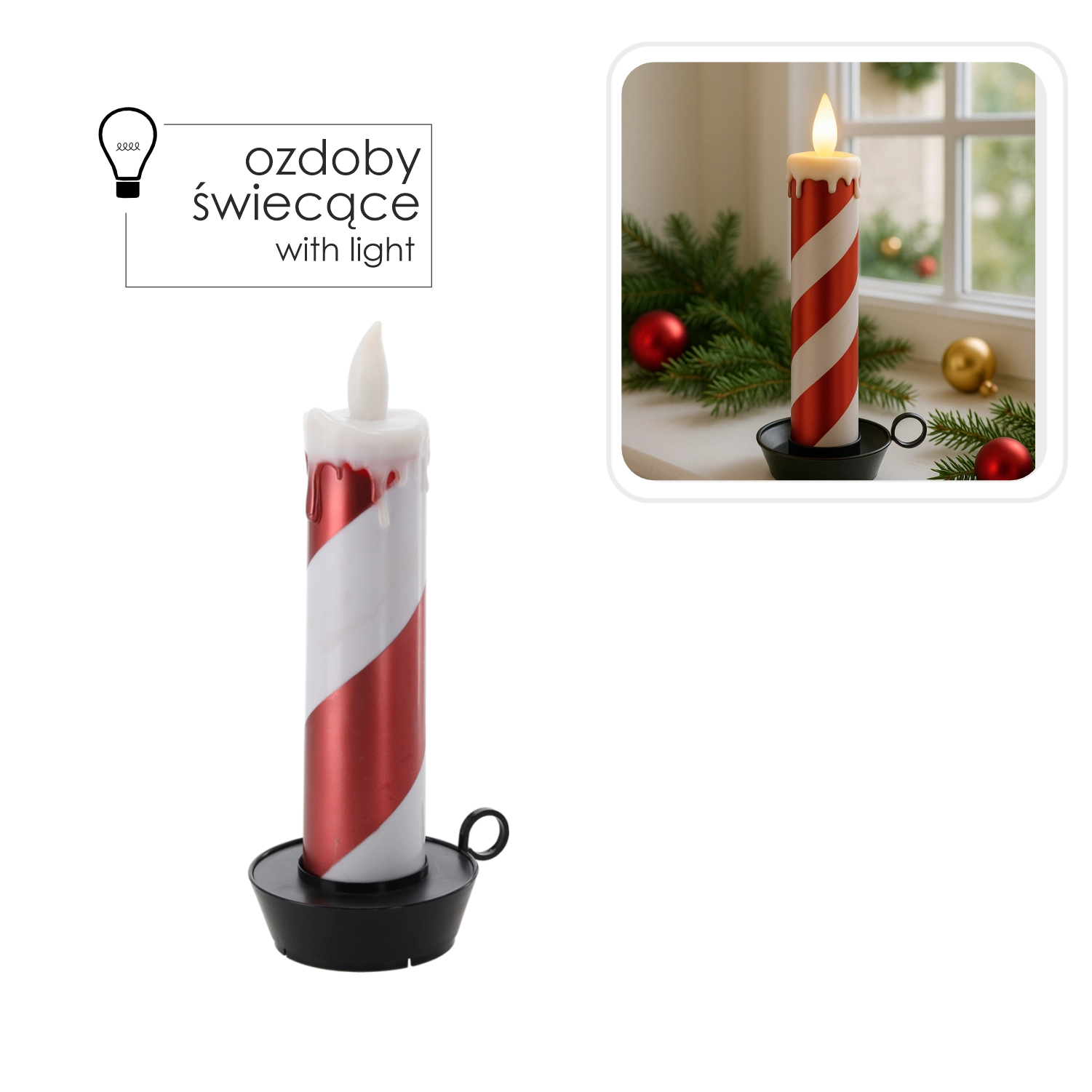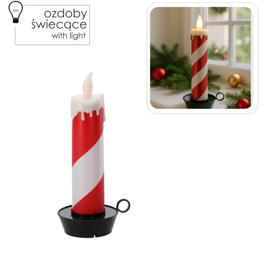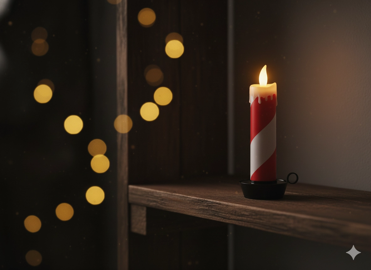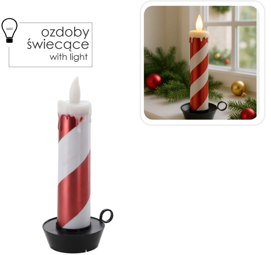 Tato stylová LED svíčka s pruhovaným bílo‑červeným designem připomínajícím cukrovou hůlku rozzáří každý interiér. Teplé, mihotavé světlo navodí útulnou náladu bez rizika otevřeného ohně a bez nepořádku z odkapávajícího vosku.