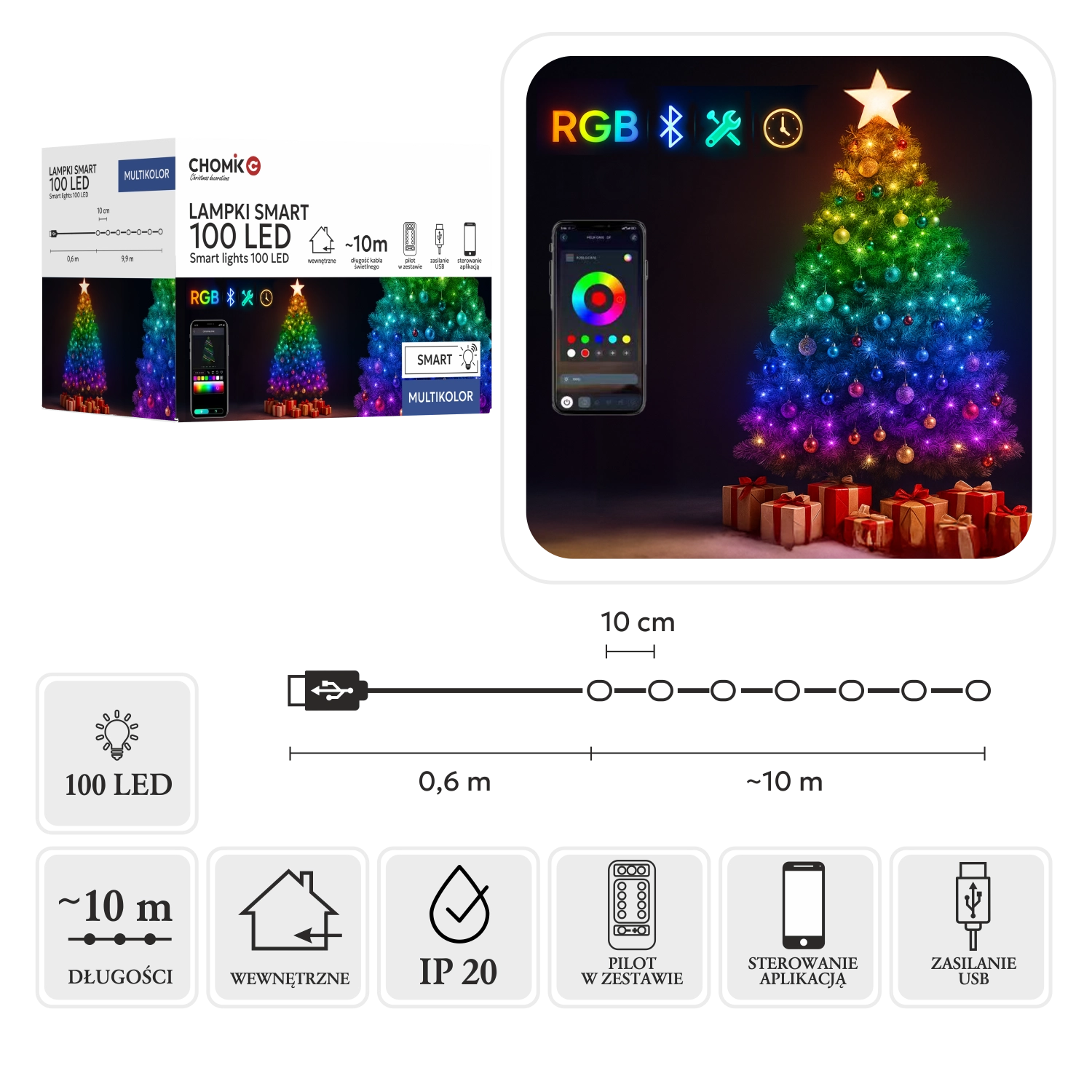 Chytré řetězové osvětlení s 100 LED RGB rozzáří obývací pokoj, ložnici i dětský pokoj. Přes aplikaci ZENGGE nebo přiložený ovladač jednoduše upravíte barvy, režimy i intenzitu. Díky napájení USB jej zapojíte k nabíječce, powerbance či USB portu TV.