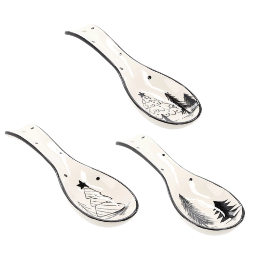 Oživte svou kuchyni během adventu i Vánoc praktickým doplňkem, který vyniká designem i funkčností. Keramická podložka pod lžíci ve tvaru vánočního stromečku chrání pracovní desku před kapkami omáček a nečistotami, zatímco její sváteční motiv dodá interiéru náladu zimních svátků.