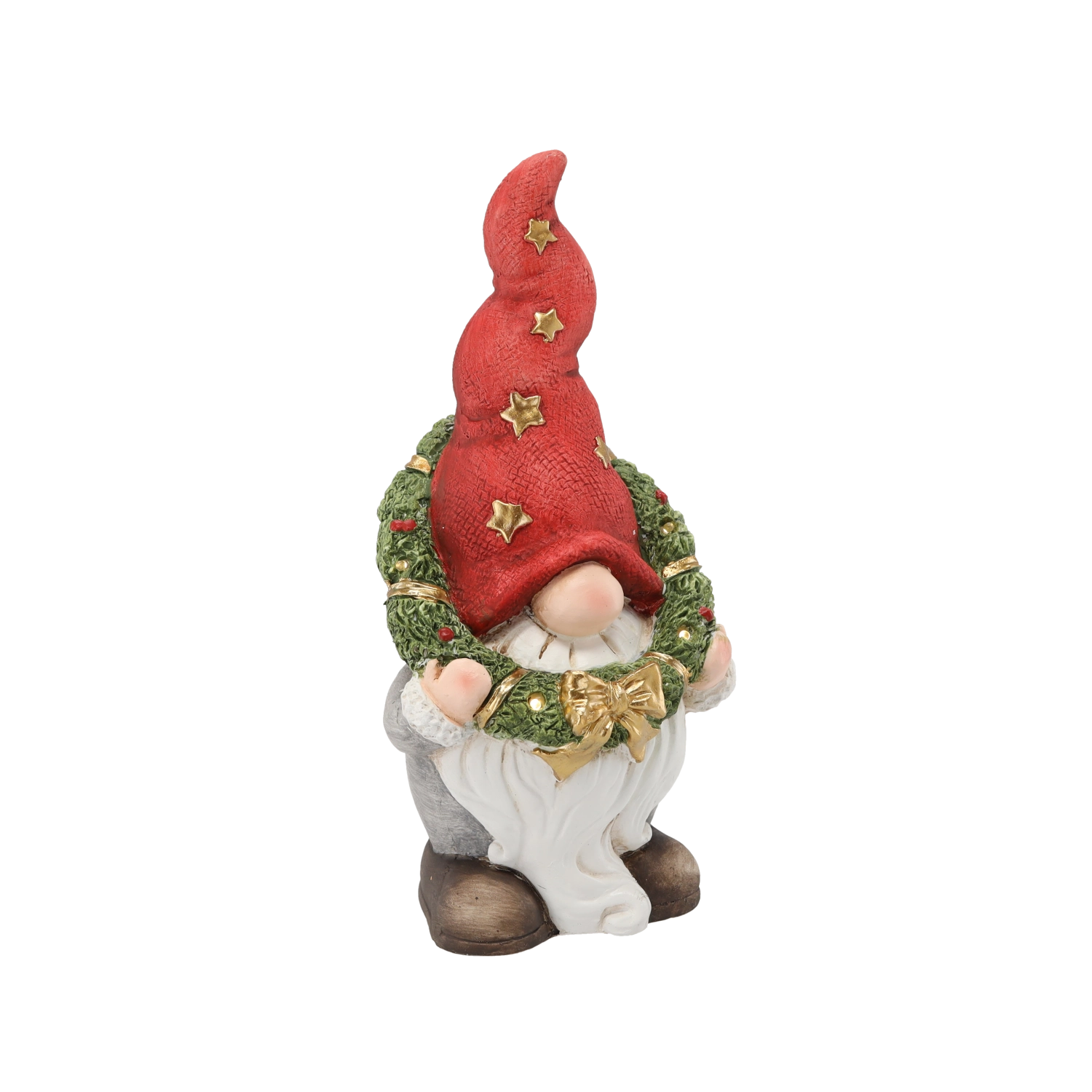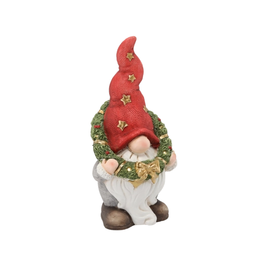 Tato detailně zpracovaná vánoční figurka skřeta s věncem vnese do vašeho interiéru útulnou sváteční atmosféru. Integrované LED osvětlení jemně prosvětluje dekor a vytváří hřejivý efekt v obývacím pokoji, předsíni i dětském pokojíčku. Díky materiálu z magneziové hmoty je figurka stabilní, odolná a vhodná pro dlouhodobé používání.