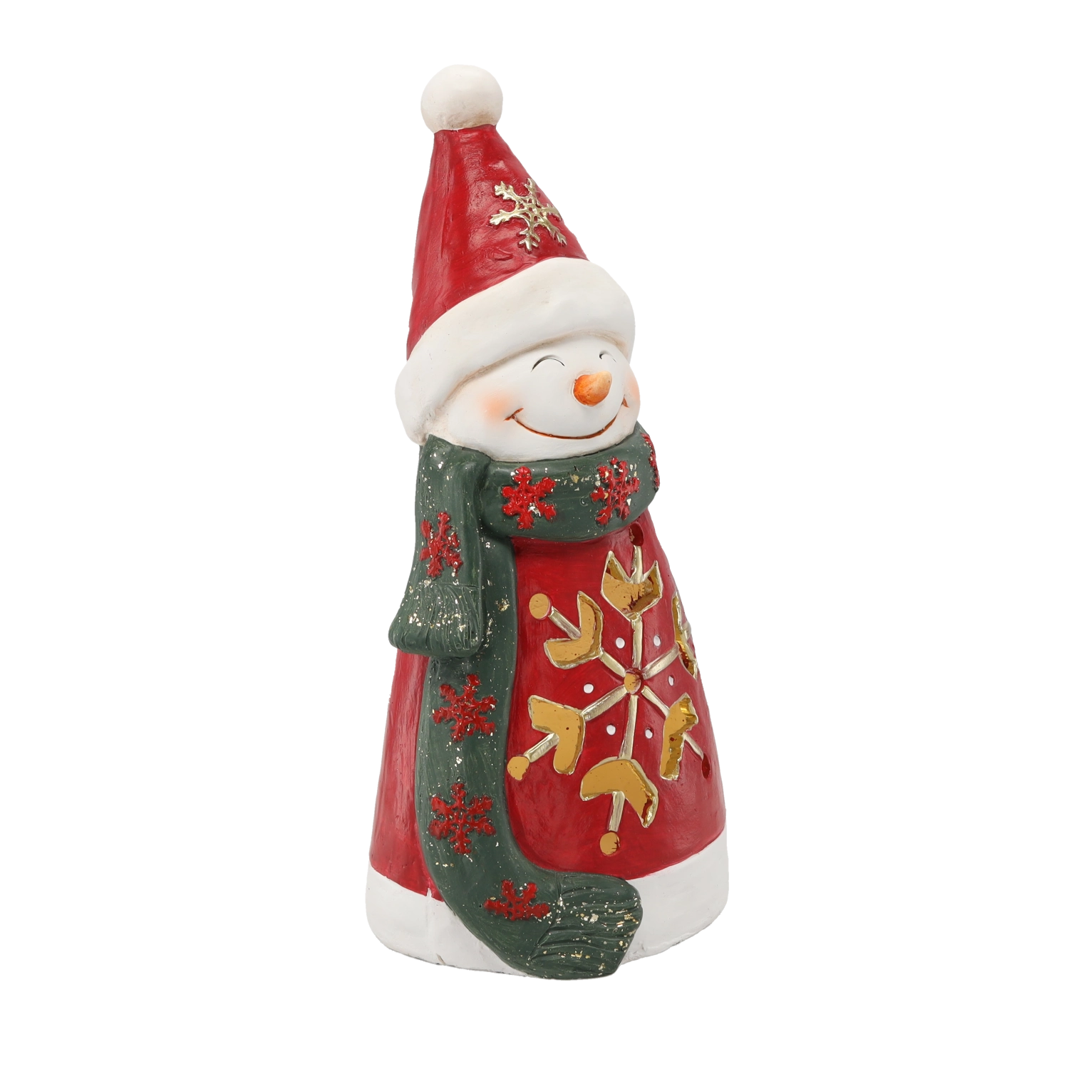 Tento stylový sněhulák v červeném kabátku a čepici, se zelenou šálou a zdobnou vločkou, vnese do interiéru sváteční kouzlo. Integrované LED světlo jemně prosvětluje dekor, čímž vytváří útulnou a hřejivou atmosféru.