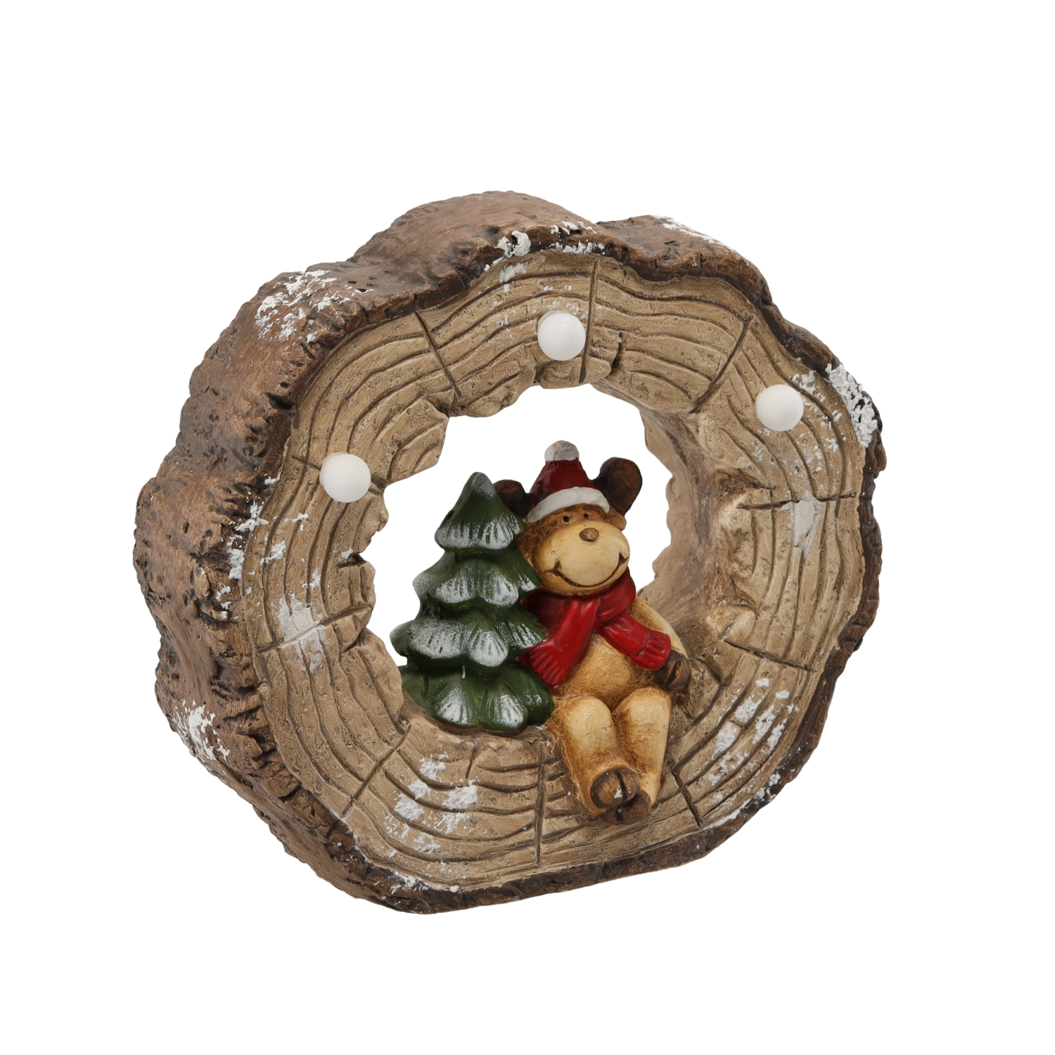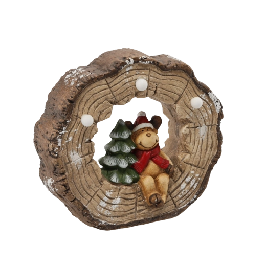 Tato vánoční figurka se sobem ukrytým v dutině pařezu přináší teplé světelné akcenty do každého interiéru. Integrované LED světlo jemně prosvítá detaily dekorace a vytváří příjemné sváteční kouzlo bez přehřívání a s nízkou spotřebou energie.