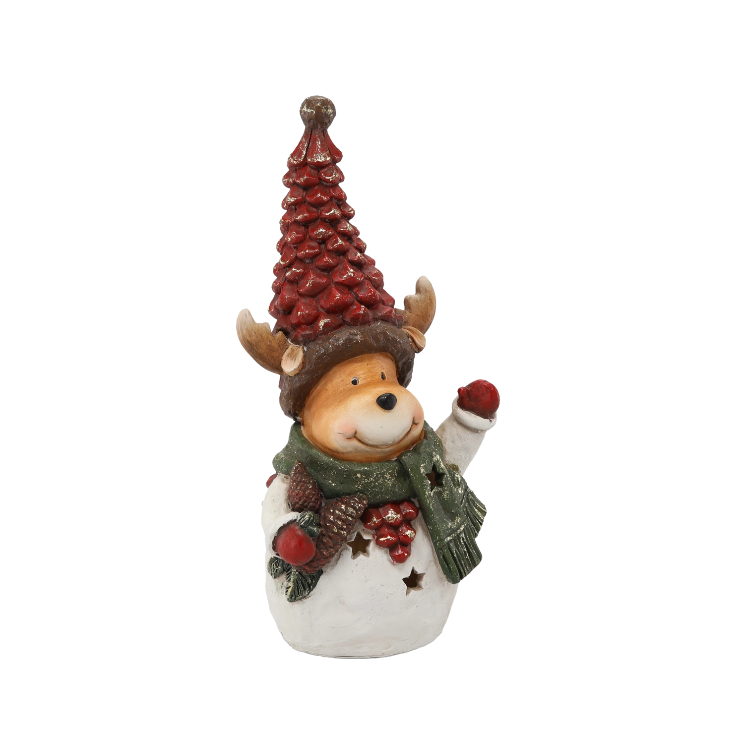 Realistické struktury čepice a šály, pečlivé malování a harmonické barvy dělají z figurky výrazný prvek vánoční výzdoby.