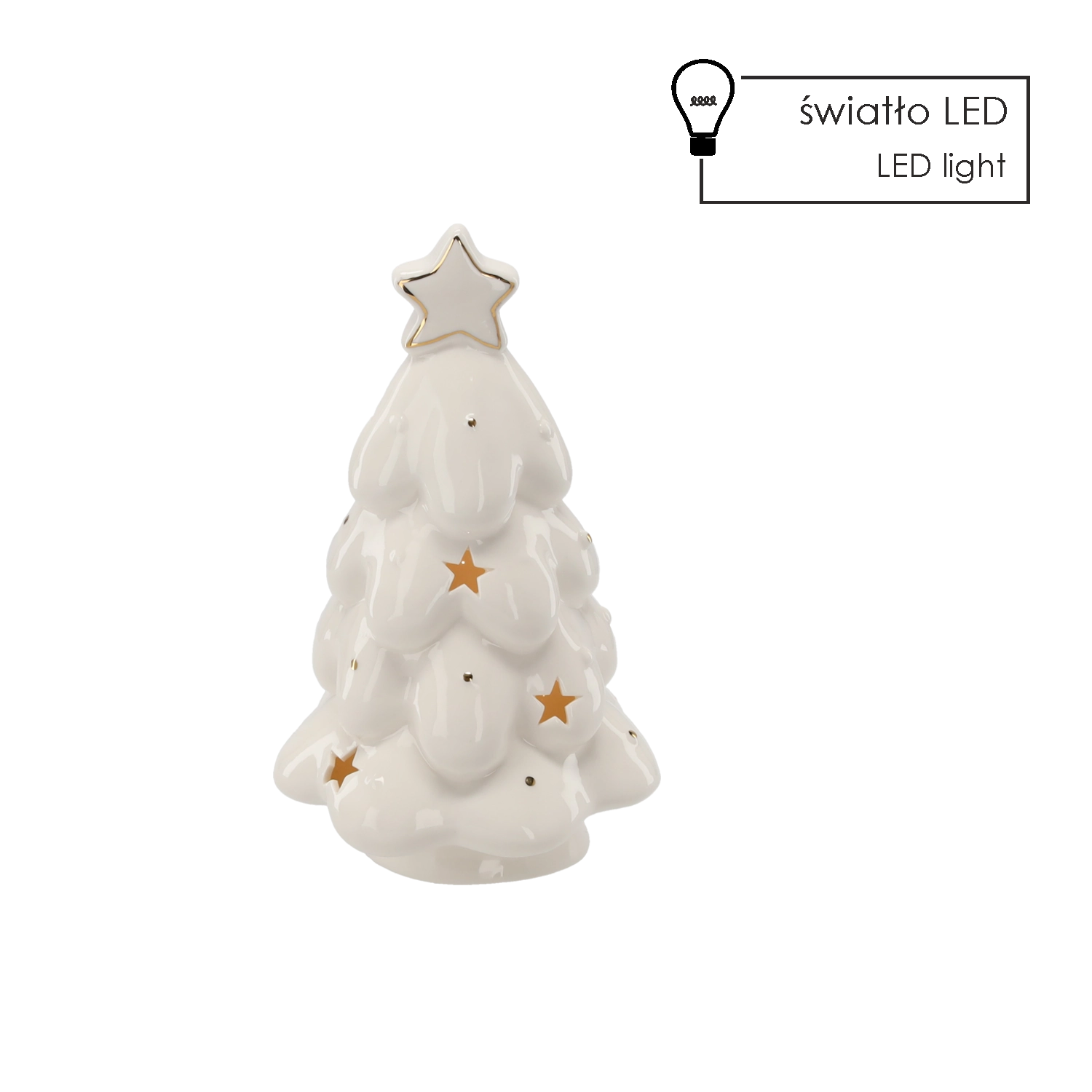 Elegantní vánoční dekorace v podobě keramického stromku se světelnými LED diodami rozzáří váš interiér příjemnou atmosférou. Díky kompaktním rozměrům se hodí na polici, komodu i sváteční stůl. Baterie jsou součástí balení, takže dekoraci můžete ihned použít.