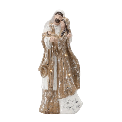 Tato propracovaná dekorace Svaté rodiny je ideální pro vytvoření vánoční nálady doma, v kanceláři i na recepci. Integrované LED podsvícení jemně zvýrazňuje detaily a dodává soše hřejivý, slavnostní vzhled. Díky výšce 55 cm působí jako výrazná, ale stále vkusná dominanta sváteční výzdoby.