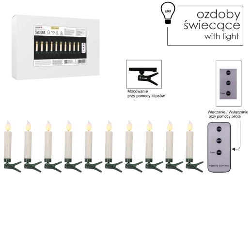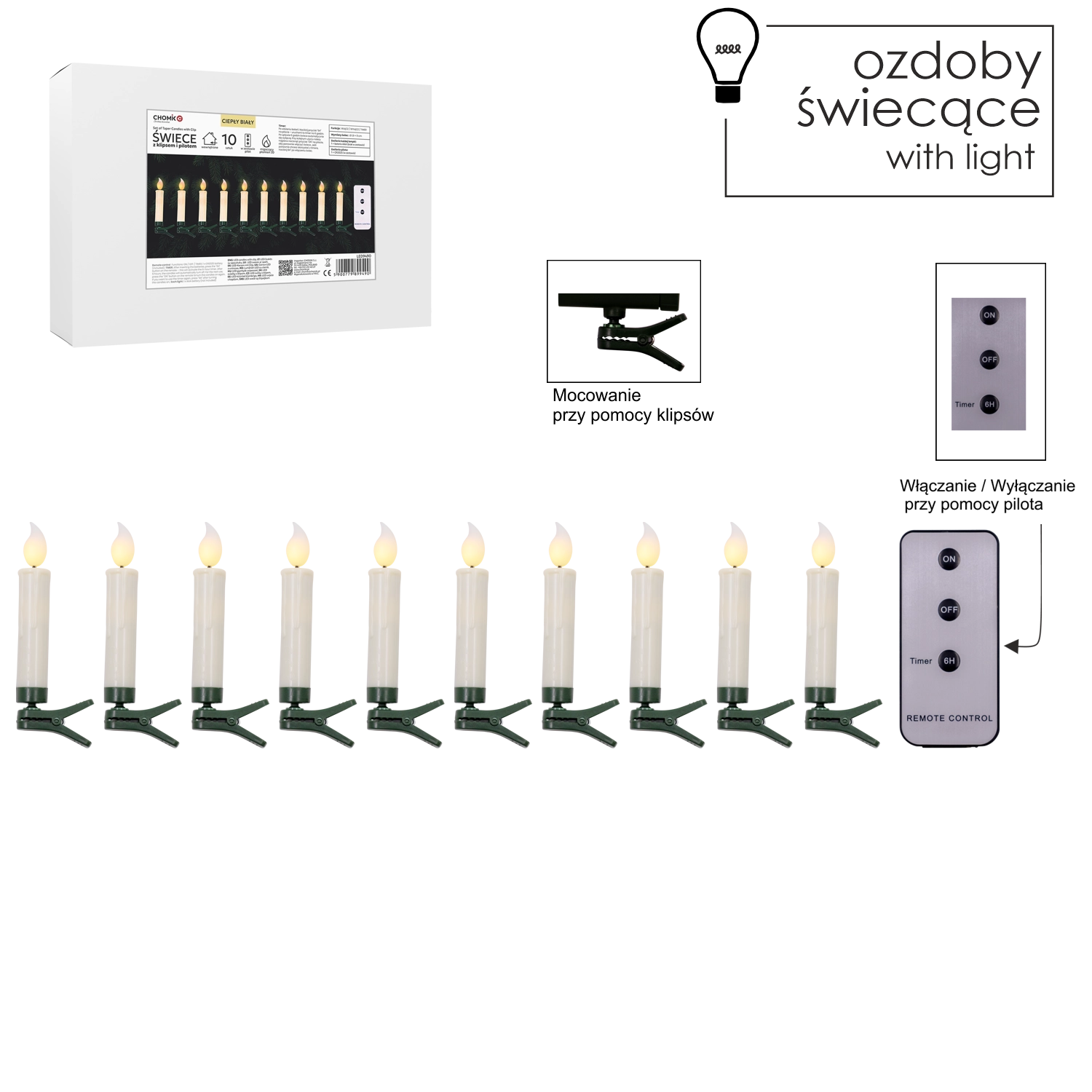Vytvořte si doma kouzelnou atmosféru s praktickým setem 10 LED svíček s klipsy a dálkovým ovladačem. Realistický 3D efekt plamene, teplé bílé světlo a časovač na ovladači zajistí pohodlné použití bez kabelů a nepořádku. Bezpečné řešení pro domácnosti s dětmi i domácími mazlíčky.
