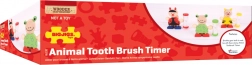 Udělejte z čištění zubů zábavný rituál! Tento praktický dětský stojánek na kartáček s integrovanými přesýpacími hodinami odměřuje 3 minuty doporučené doby čištění, chrání kartáček do dalšího použití a láká barevným zvířecím designem (žabka, beruška, tygřík). Vyrobeno z kvalitního dřeva a plastu, splňuje evropské bezpečnostní normy.