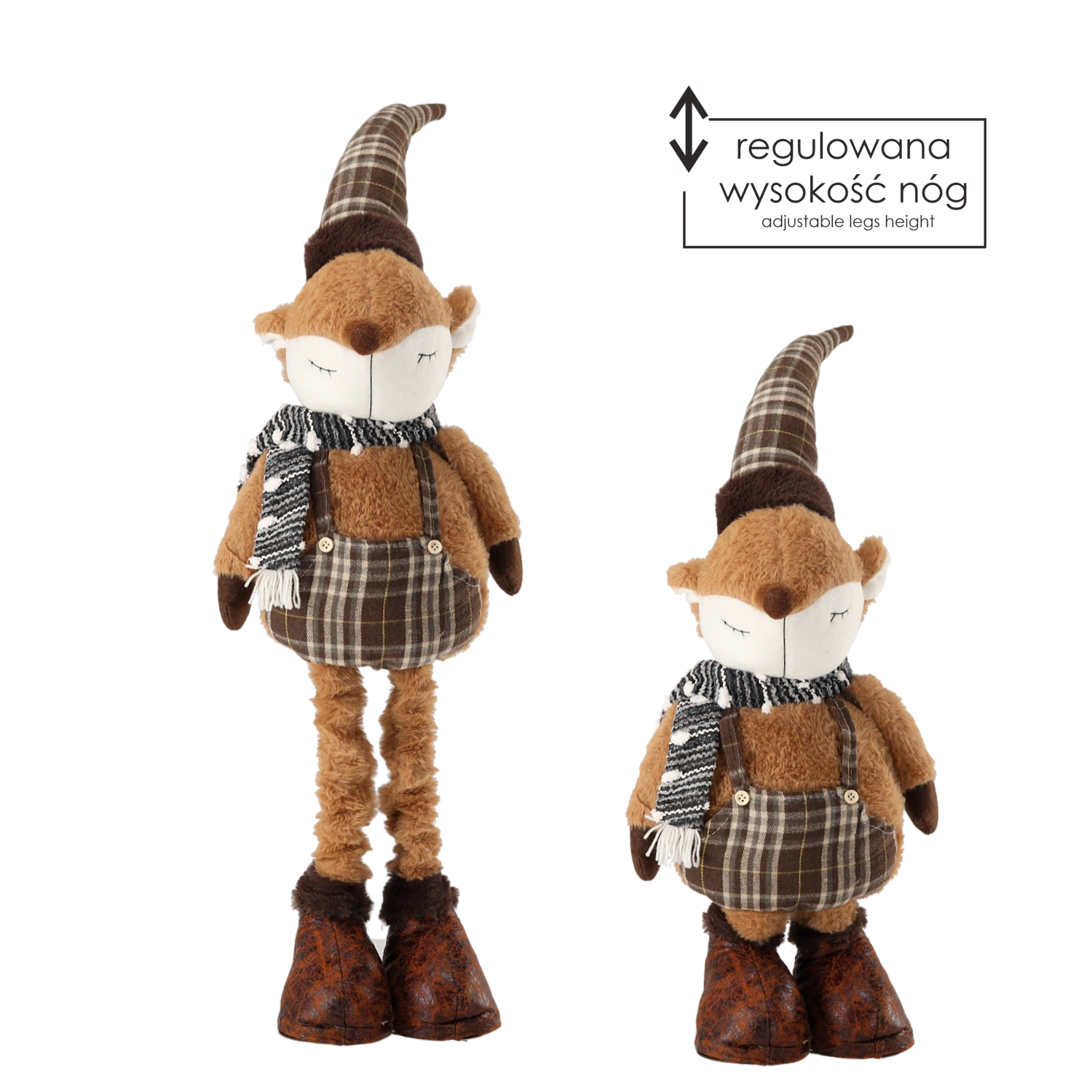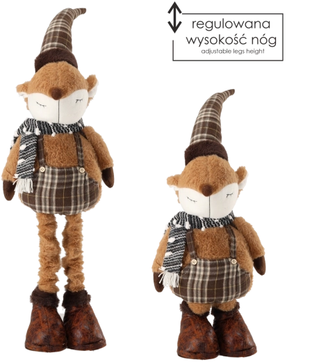 Nohy s teleskopickým mechanismem umožňují rychlé přizpůsobení různým místům – od polic a komod po vánoční koutky v obývacím pokoji. Tradiční barevné ladění a lišácký šarm dodají interiéru útulnost a sváteční kouzlo.