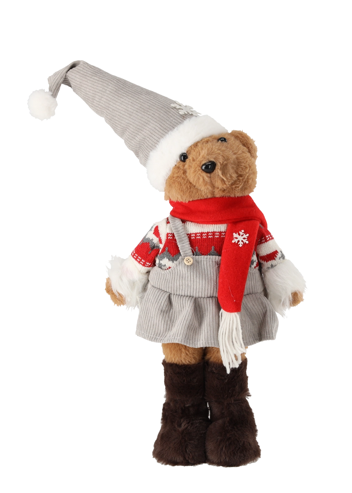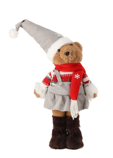 Vytvořte si kouzelnou sváteční atmosféru s dekorativním plyšovým medvídkem vysokým 50 cm. Každý kousek je oblečen do stylového zimního oblečení s bohatými detaily, které zvýrazňují jeho sváteční charakter. Měkké provedení je příjemné na dotek a působí hřejivě v každém interiéru.