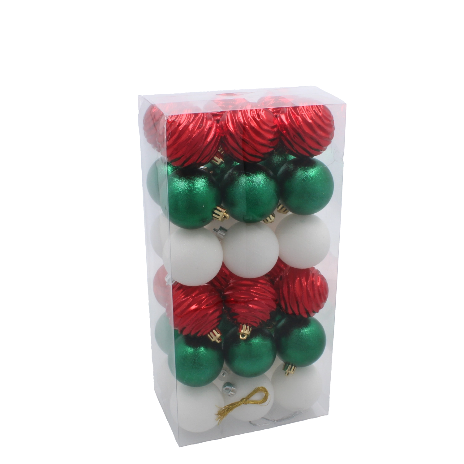 36 kusů v červené, zelené a bílé barvě umožní vytvořit tradiční, sladěnou výzdobu s výrazným efektem i na větším stromku.