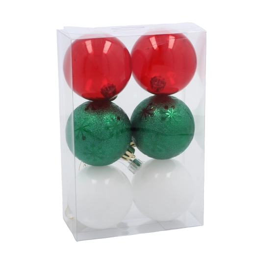 S touto univerzální sadou ozdob doladíte vánoční výzdobu do posledního detailu. Kombinace červené, zelené a bílé vytváří nadčasovou paletu, která skvěle ladí s tradičními i moderními dekoracemi. Odolný, netříštivý plast zajišťuje bezpečí v domácnostech s dětmi i mazlíčky a bezstarostnou manipulaci.