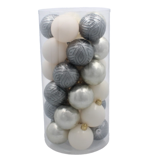 Díky 30 kusům ozdob snadno pokryjete celý stromek v jednotném schématu. Různé povrchové úpravy – matné, lesklé a reliéfní – přinášejí hru světel a textur, která pozvedne sváteční atmosféru na vyšší úroveň.