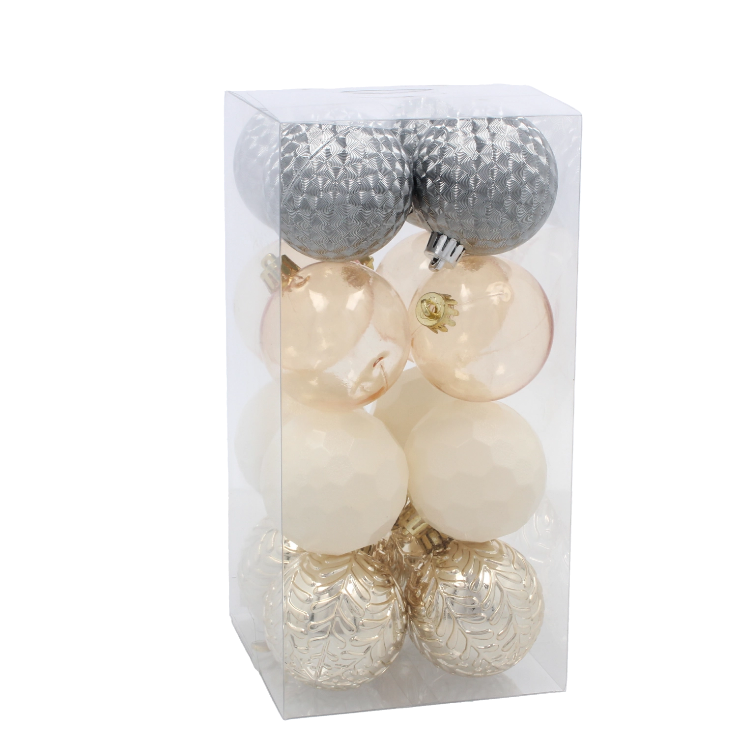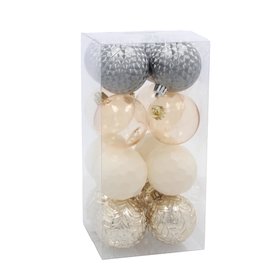 Vytvořte si dokonale sladěnou vánoční výzdobu se sadou 16 ozdob CHOMIK v nadčasových tónech šampaňské, šedé a bílé. Kombinace hladkých a zdobených povrchů dodává stromku i dekoracím luxusní a moderní charakter, který skvěle zapadne do tradičních i současných interiérů.
