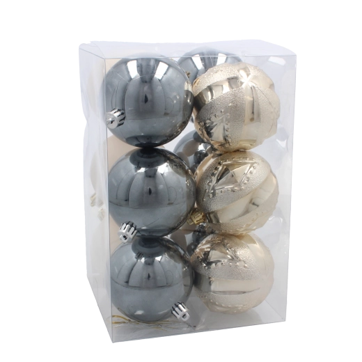 Vylaďte vánoční stromek do posledního detailu. Tato pečlivě sladěná sada skleněných koulí přináší styl, odolnost a jednotný vzhled, který působí luxusně v každém interiéru. Kombinace šampaňské, šedé a bílé barvy se postará o jemný kontrast a efektní odlesky světel.