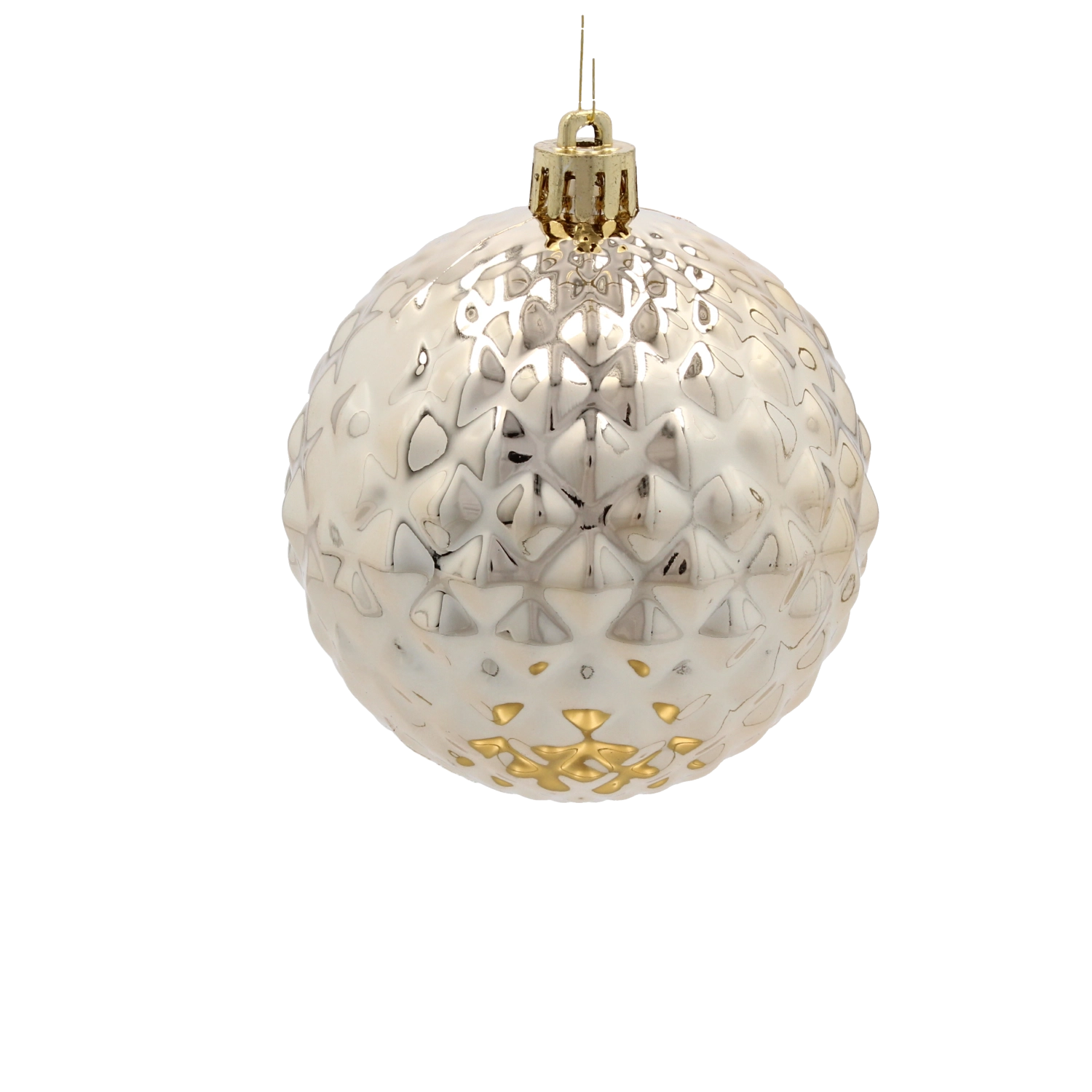 Šampaňská, stříbrná a bílá vytvářejí moderní, ale nadčasový vzhled, který vynikne na jakémkoli stromku i v dalších svátečních aranžmá.