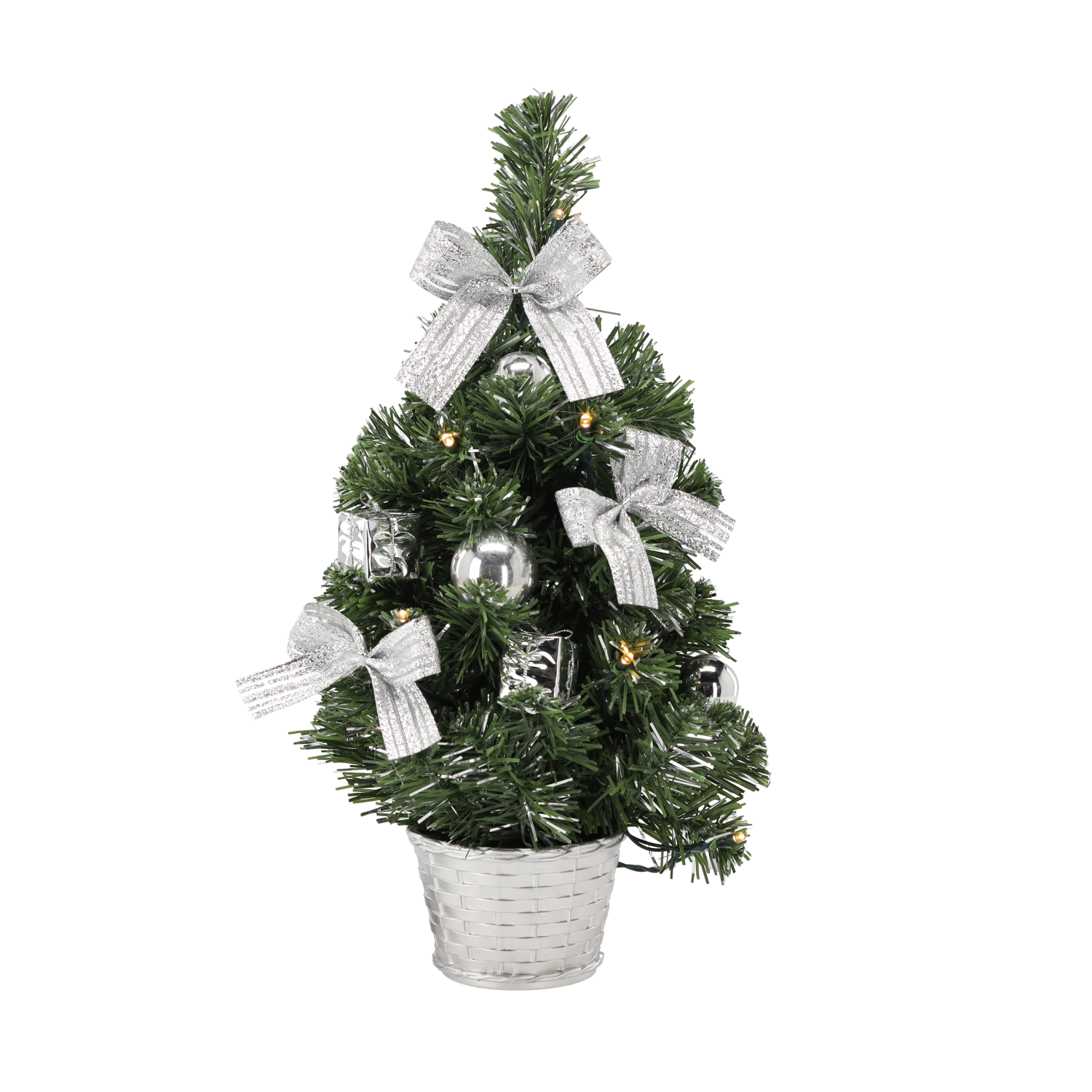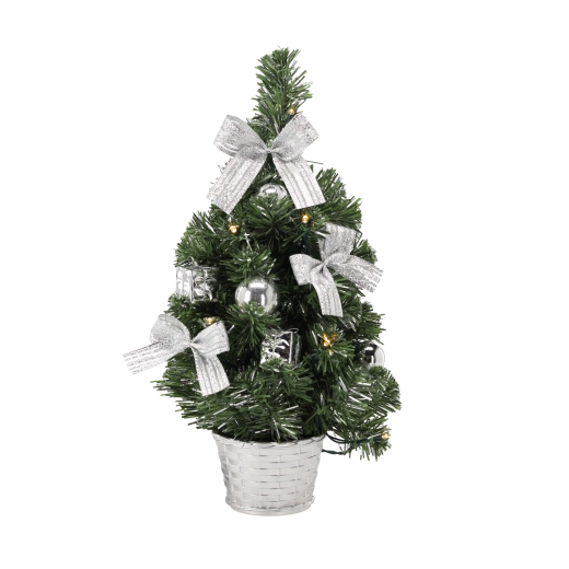 Stromek je předzdobený mašličkami a baňkami v různých barvách, takže nevyžaduje další aranžování. Úsporné LED diody zajistí dlouhou životnost a nízkou spotřebu.