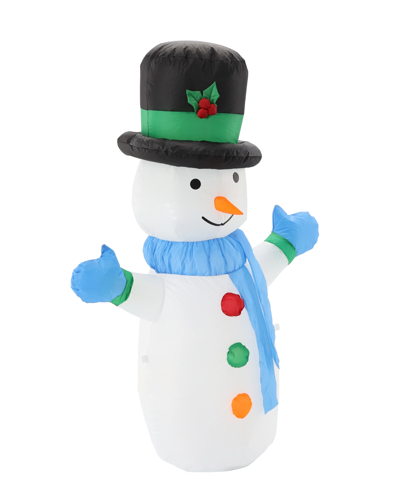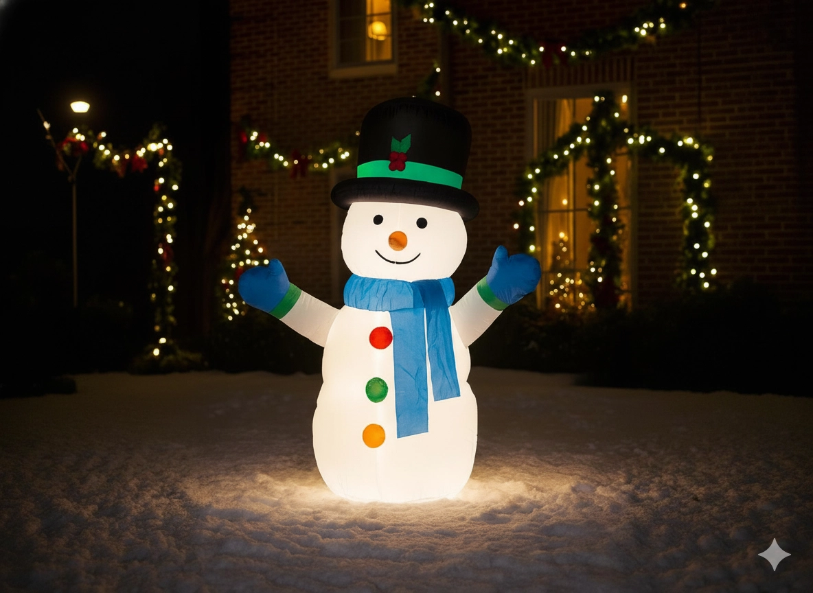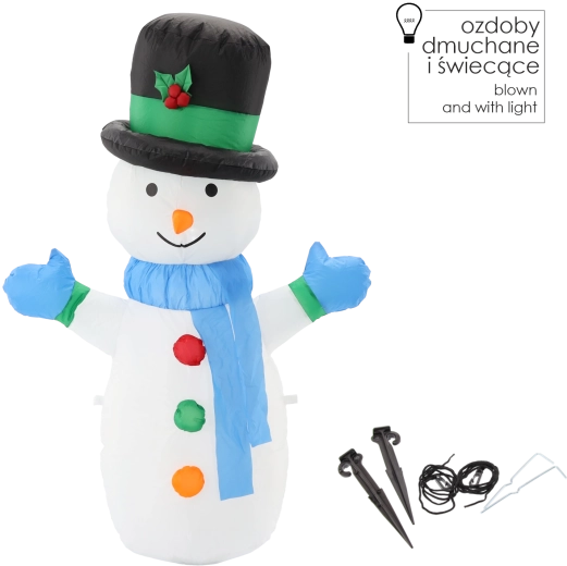 Tento kompaktní, ale výrazný vánoční nafukovací sněhulák 120 cm promění balkon, zahradu i vstupní prostor v útulnou zimní scenérii. Stačí zapojit do zásuvky a během chvilky stojí připraven šířit sváteční náladu s vnitřním LED světlem.